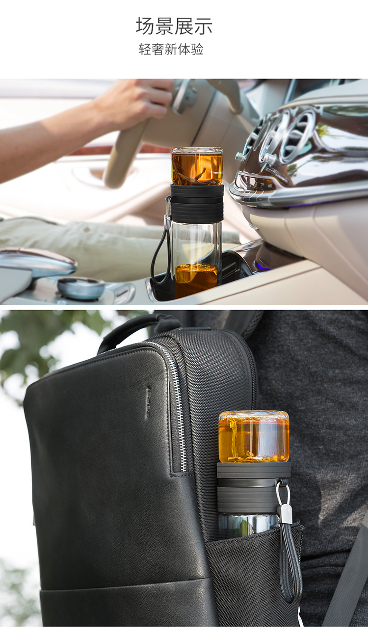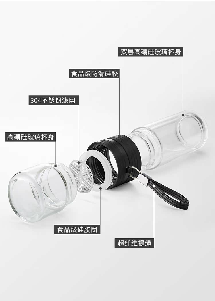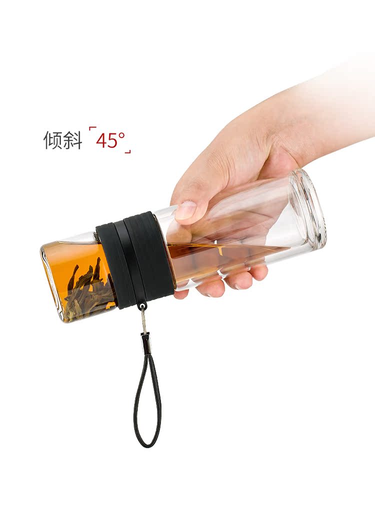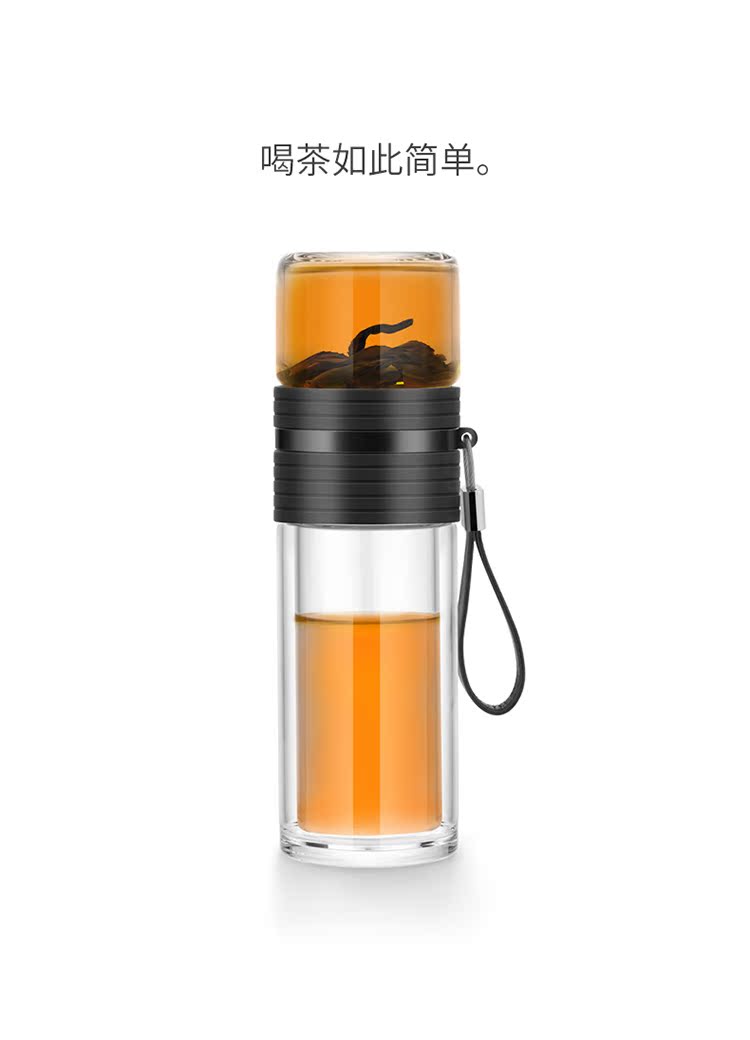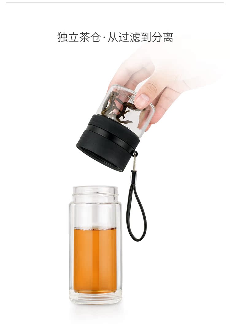 茶色(送180克瓶裝除垢劑)尚明茶水分離泡茶杯雙層耐熱車載玻璃杯男女便攜式隨手杯過濾水杯