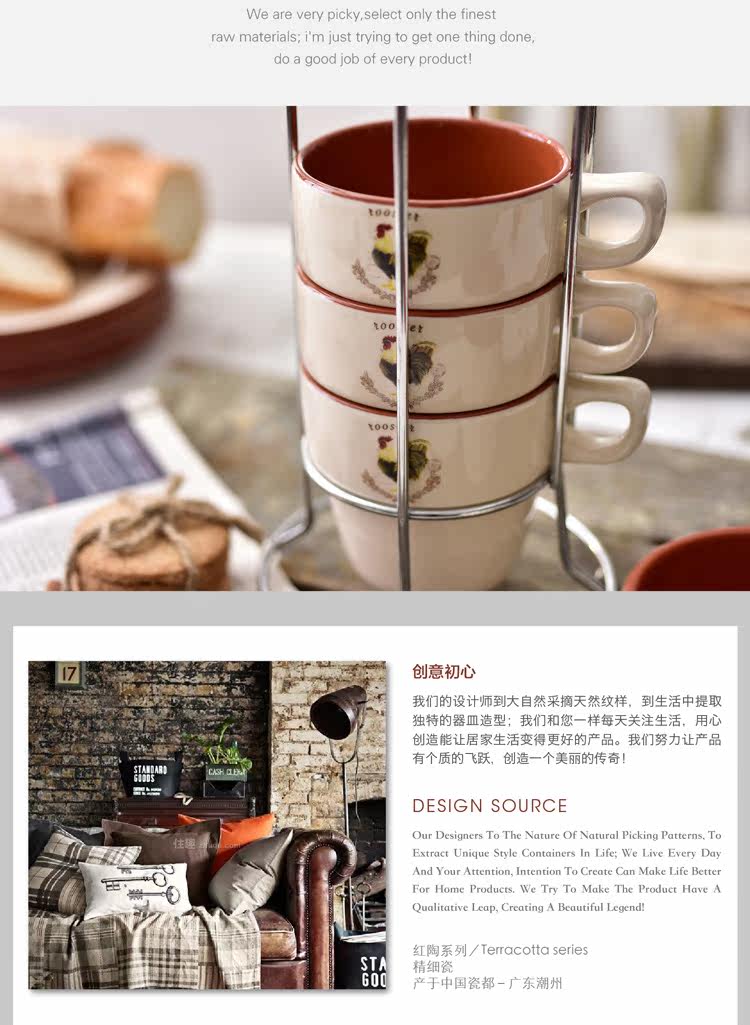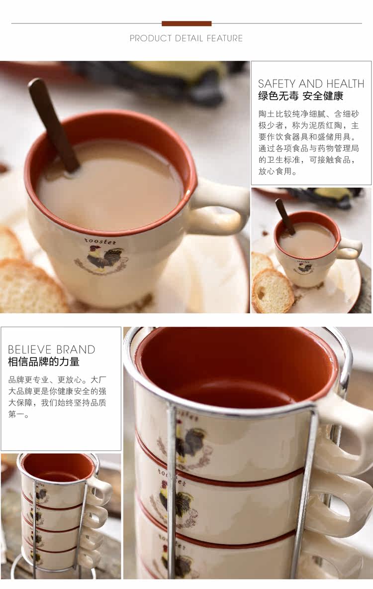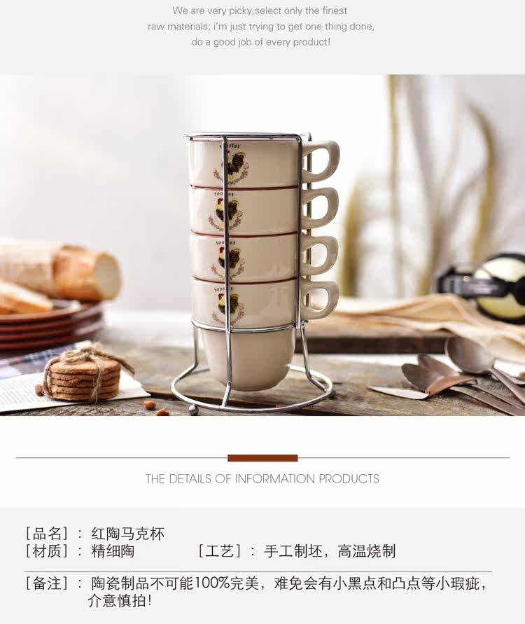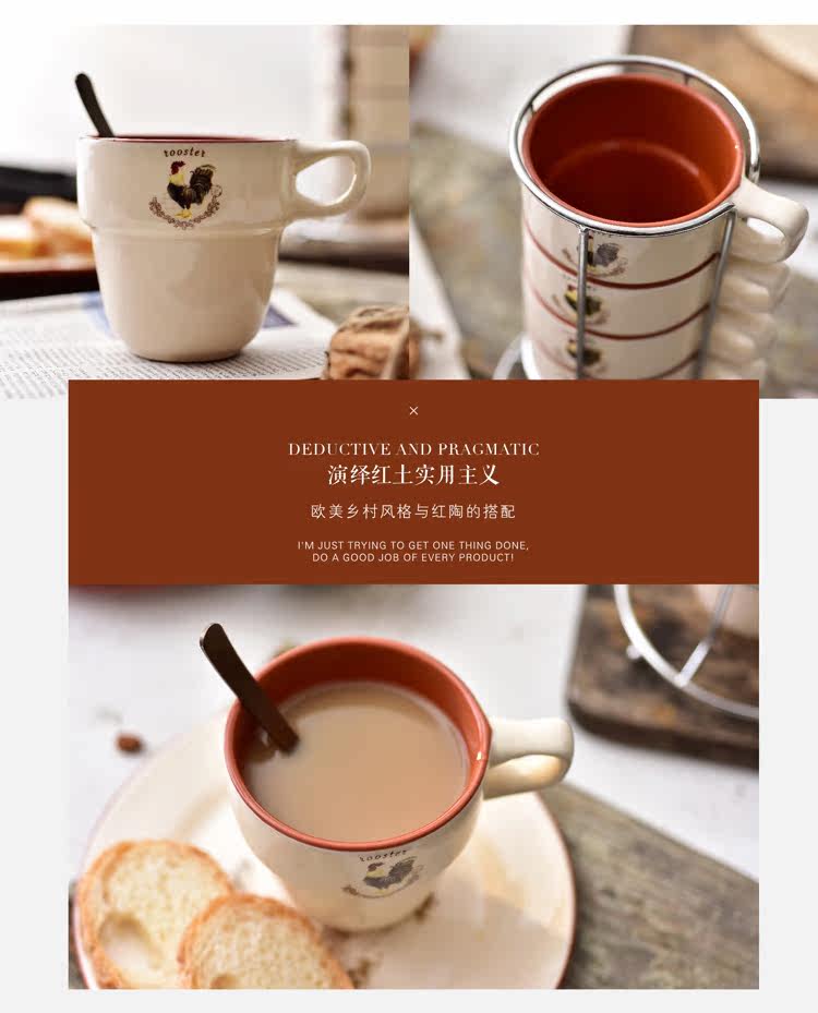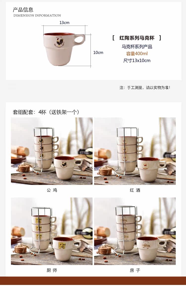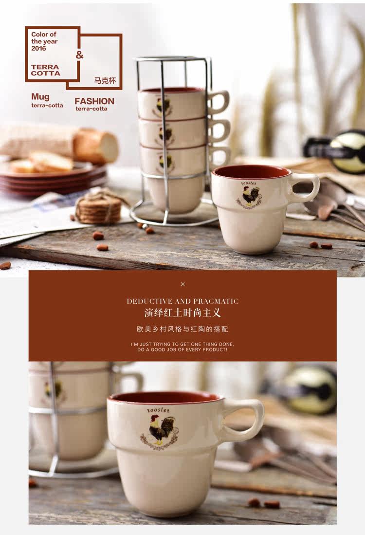 紅酒4件創意歐式杯子陶瓷套裝簡約家用四人疊疊杯水杯咖啡杯馬克杯送鐵架