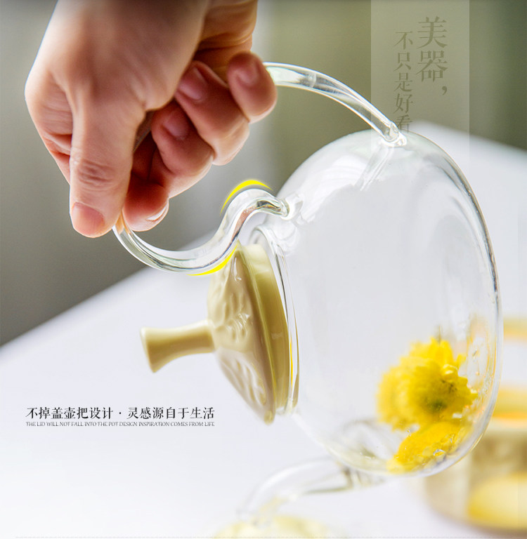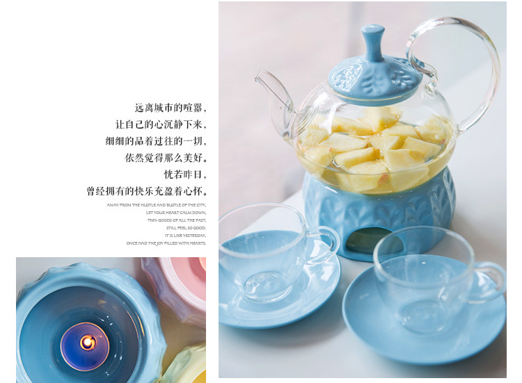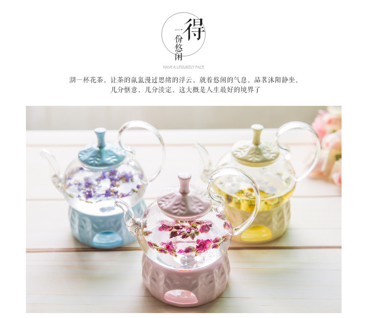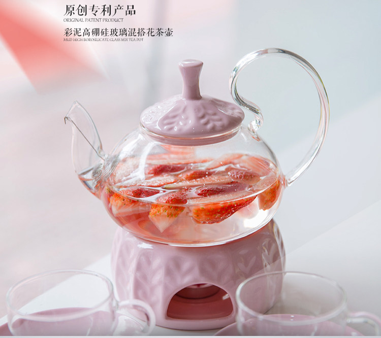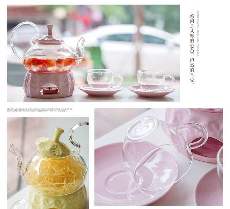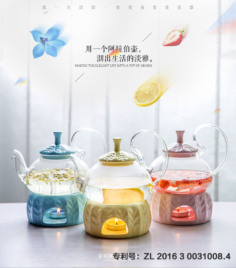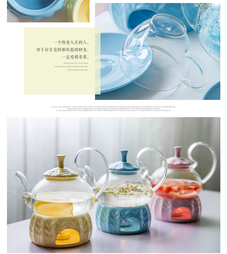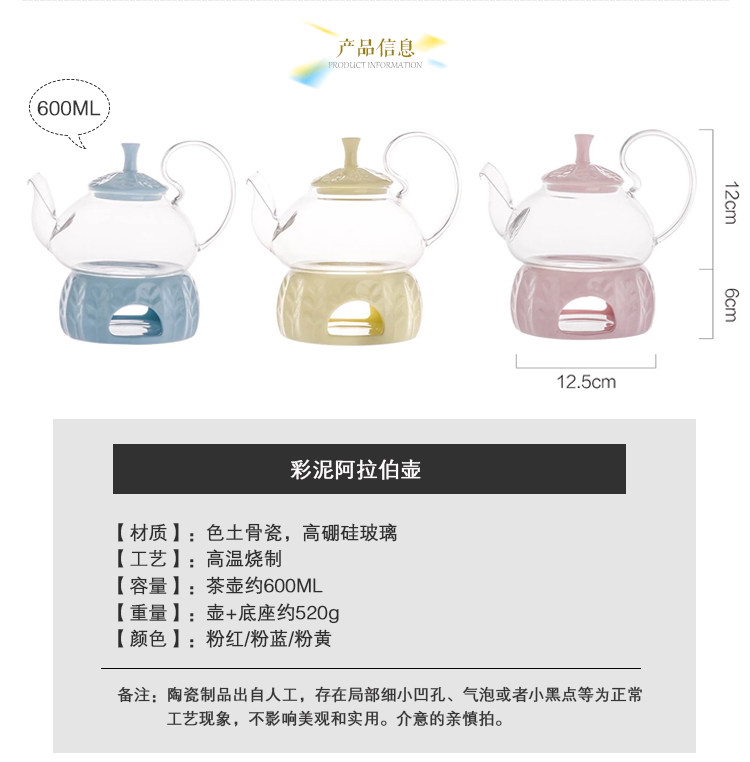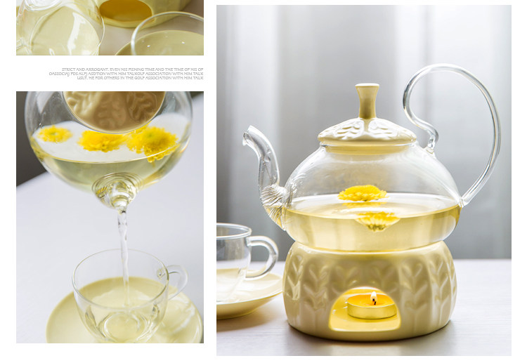 淺黃單壺【一壺一底座】花茶壺陶瓷蠟燭底座加熱耐熱加厚下午茶茶具玻璃泡茶器水果茶壺