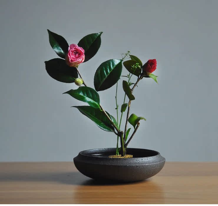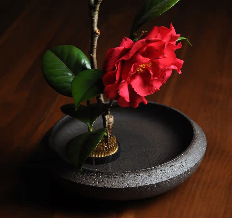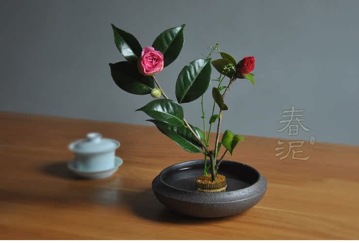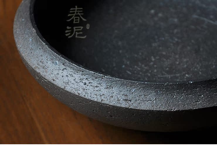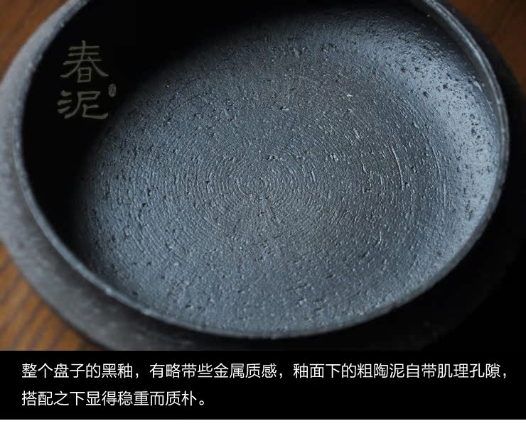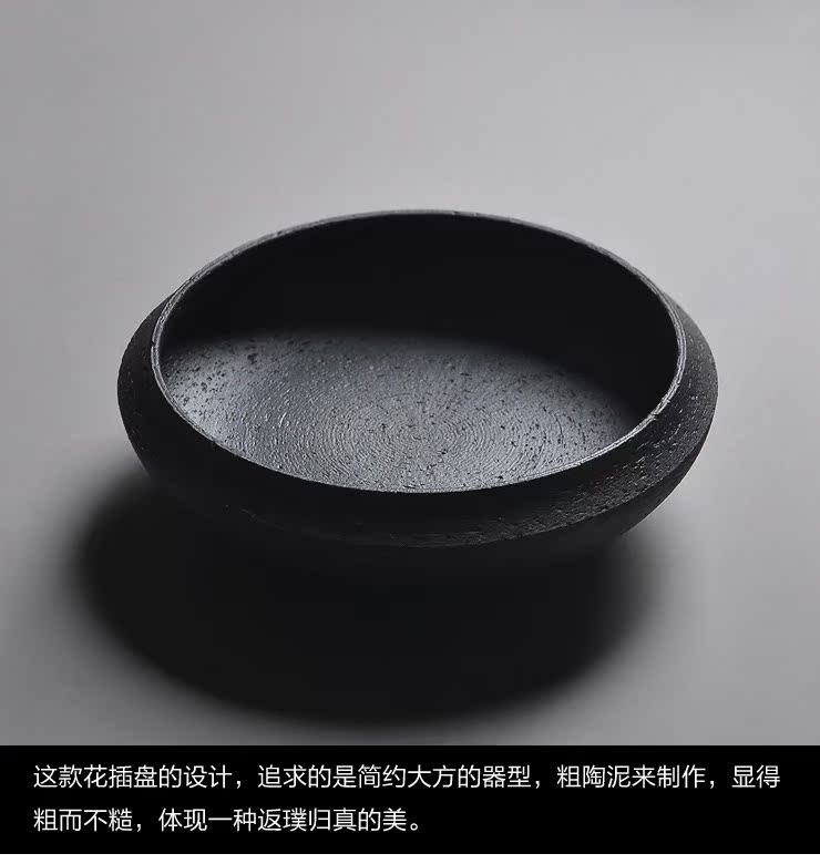春泥手工粗陶瓷黑釉花器日式藝術插花禪意黑花插茶室會所花道