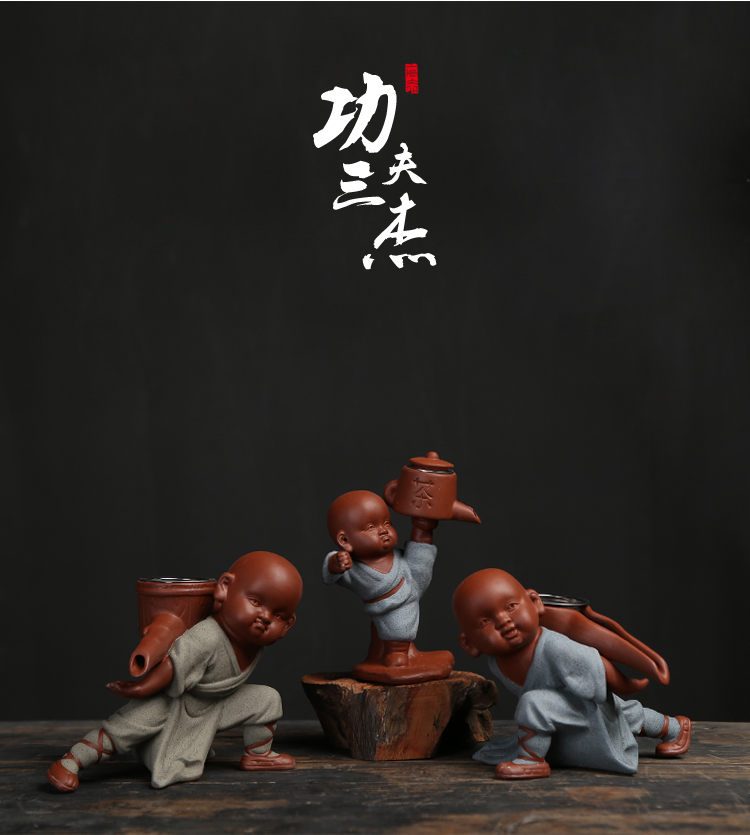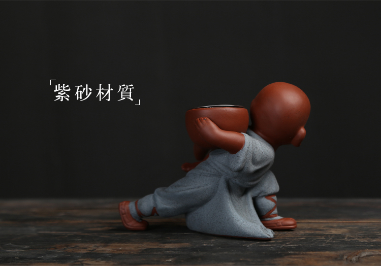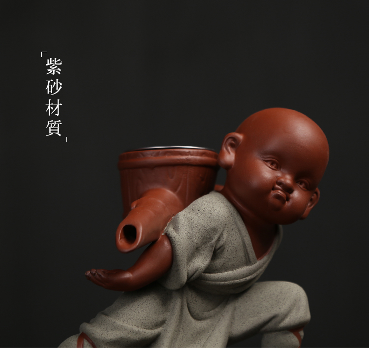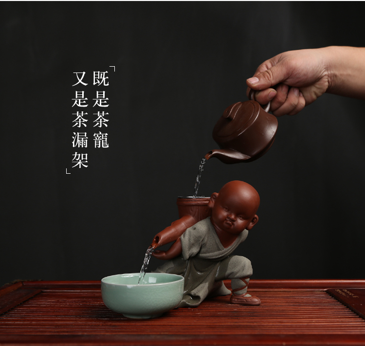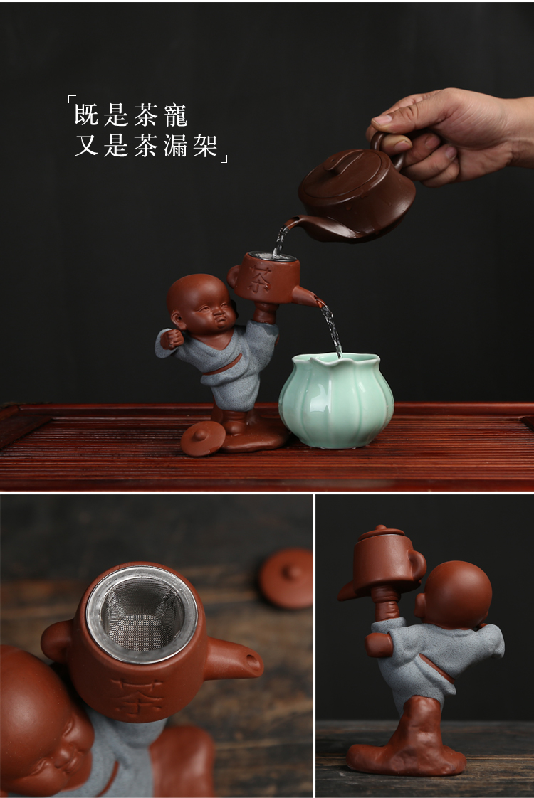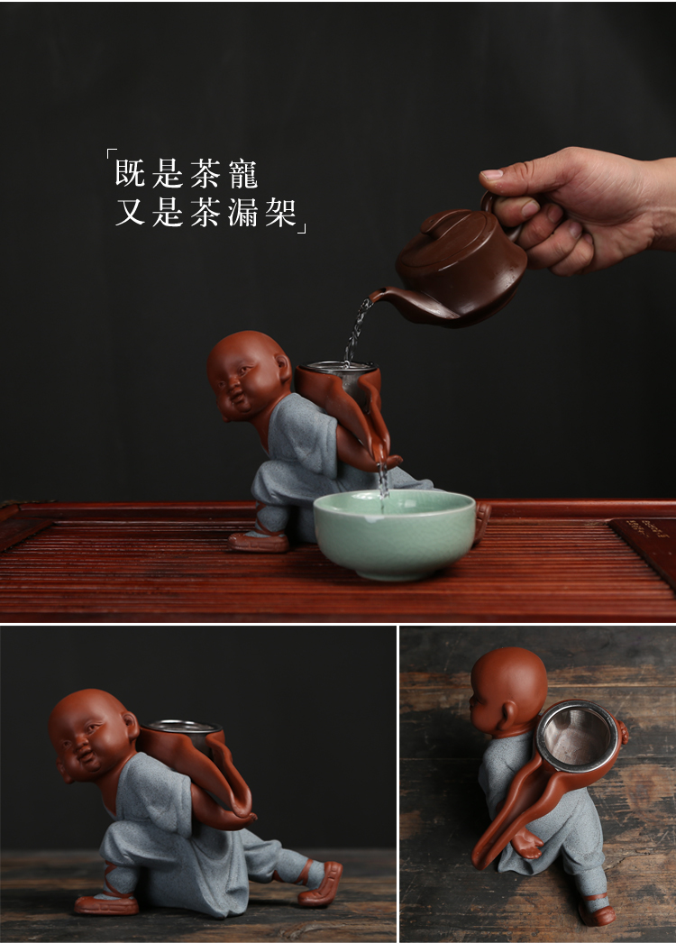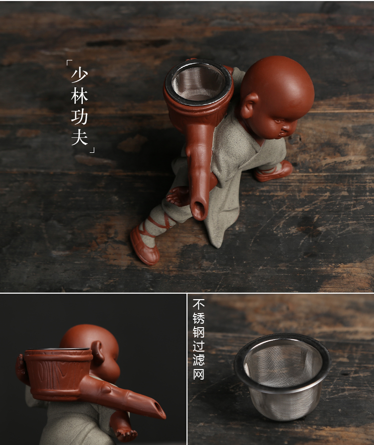 功夫和尚精品茶寵擺件可愛功夫茶具配件過濾網套裝創意紫砂小和尚懶人茶漏