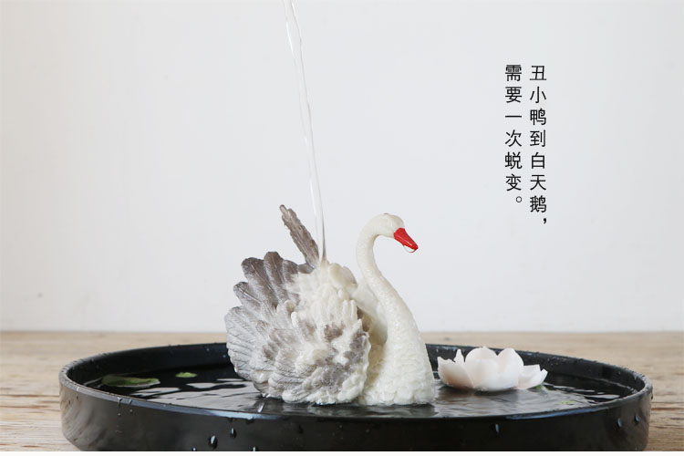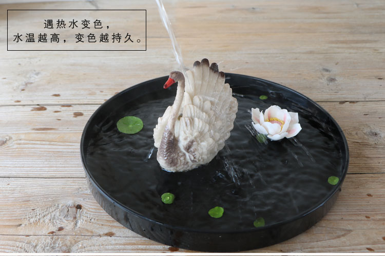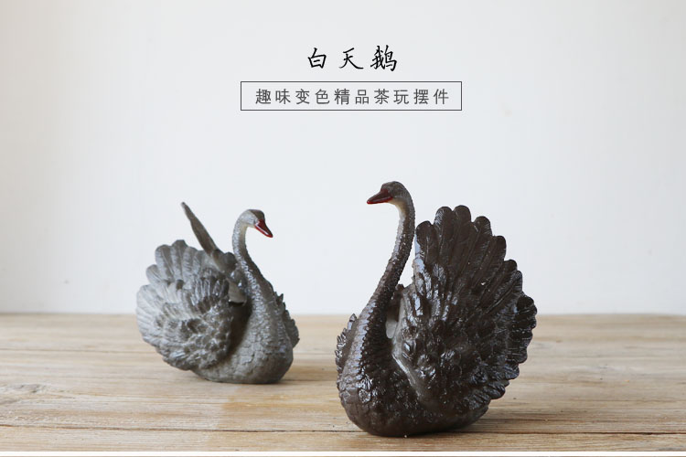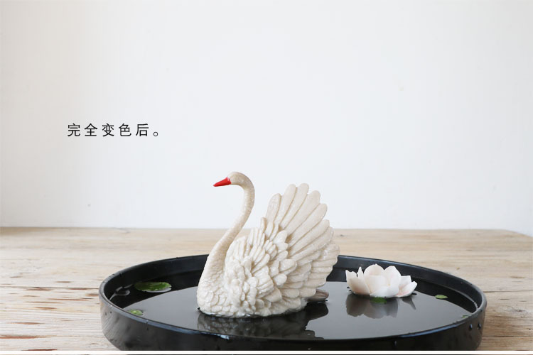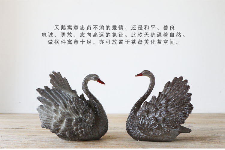 變色天鵝一對變色茶寵 擺件創意精品耐熱樹脂茶玩茶道茶桌配件 美麗白天鵝