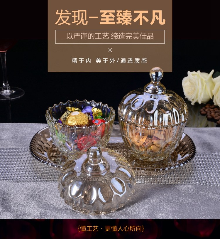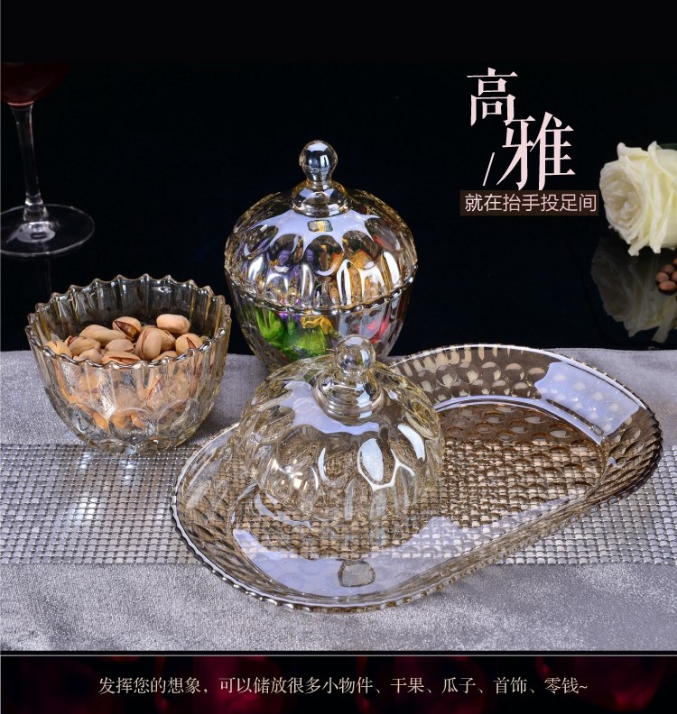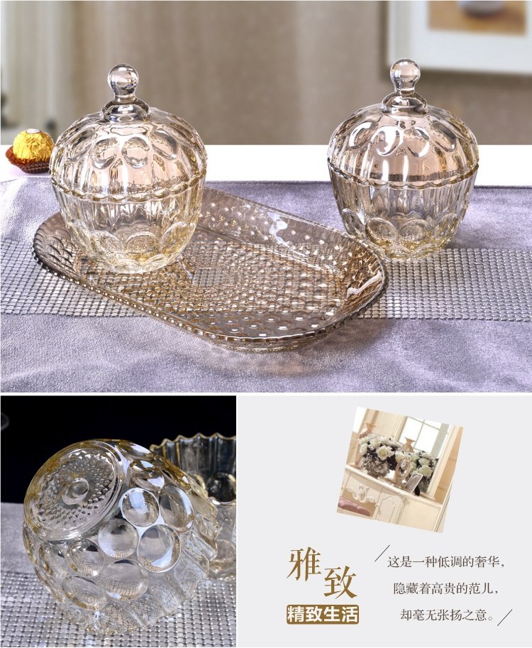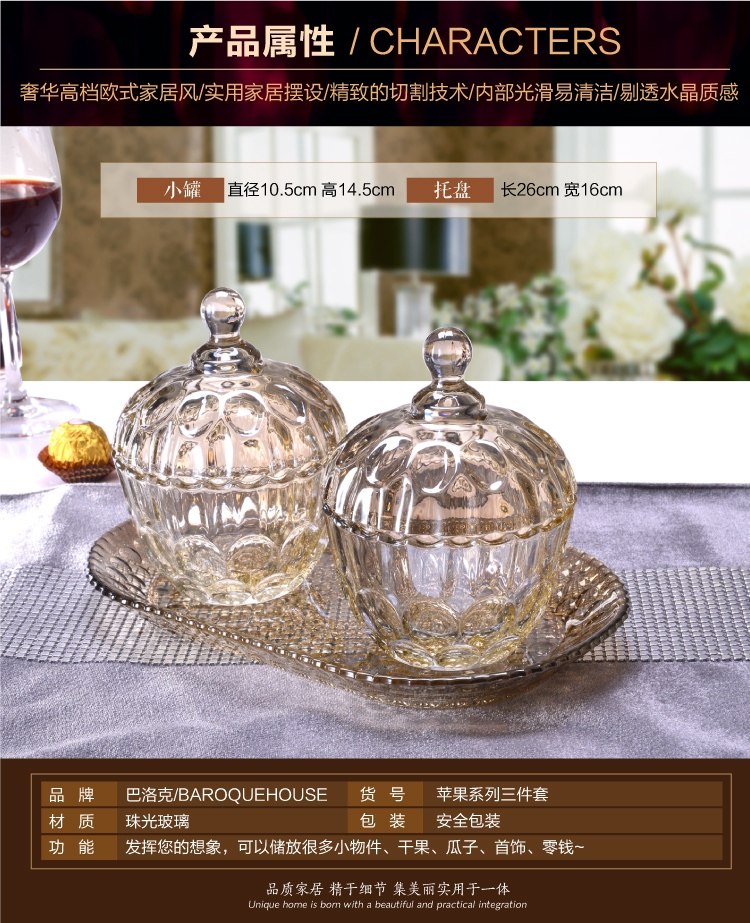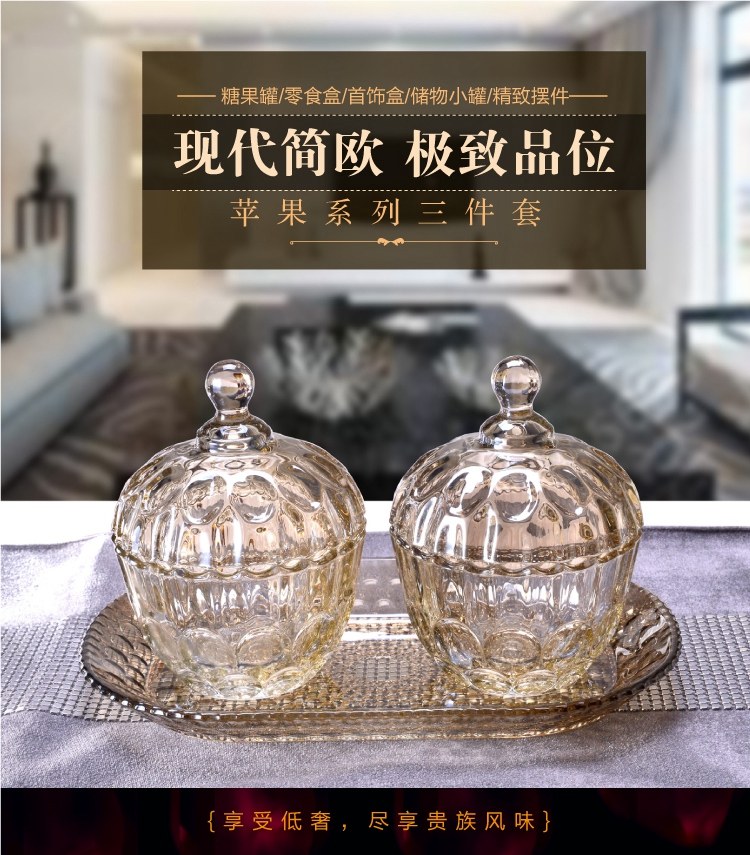 歐式糖果罐套裝 糖缸三件套帶托盤玻璃裝飾器皿多功能時尚擺件