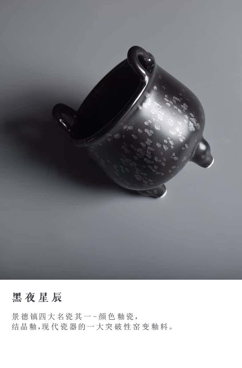 黑夜星辰三足雙耳爐大魚美器陶瓷香爐線香塔香盤香粉香座佛具香插仿古雙耳三足爐擺件