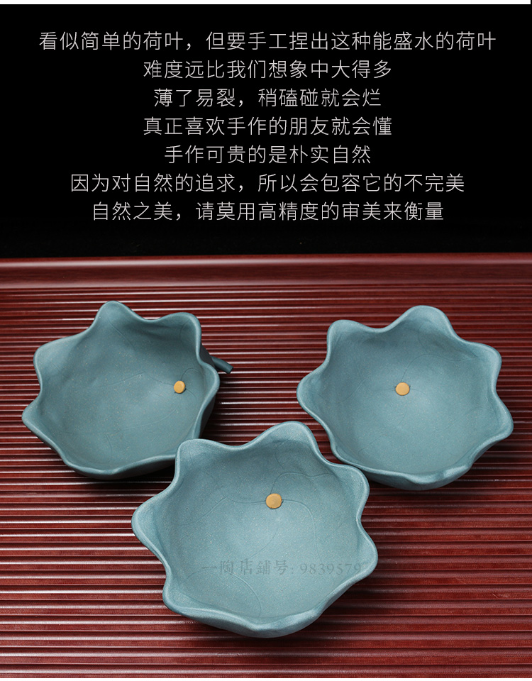 荷葉(小巧)紫砂茶洗荷葉水洗筆洗杯洗宜興煙灰缸煙缸全手工雕塑茶寵擺件