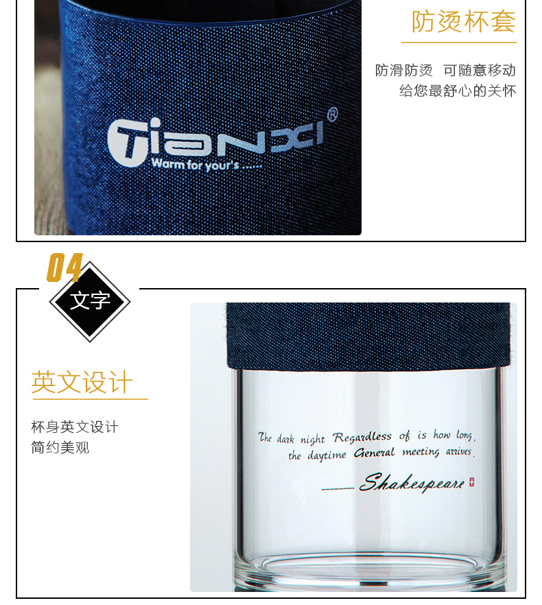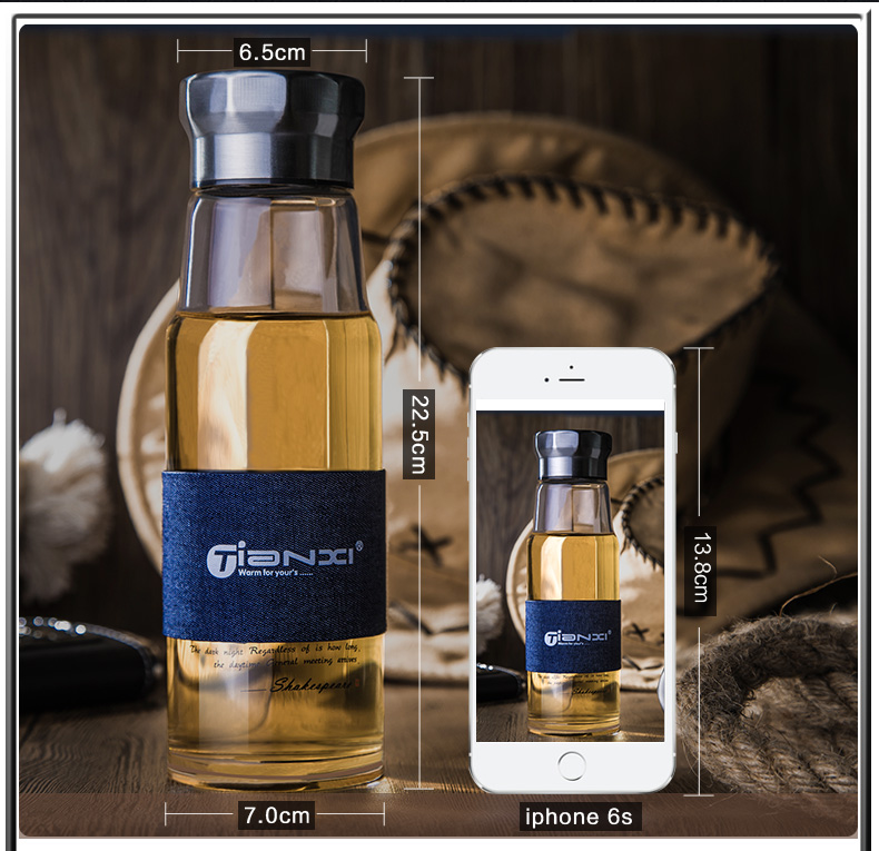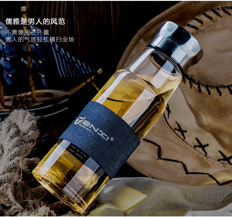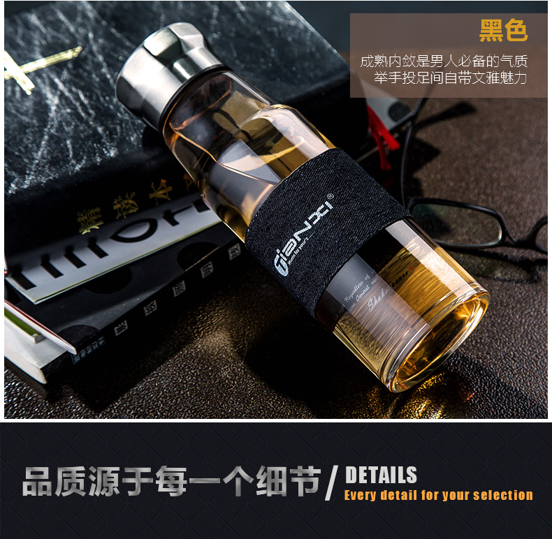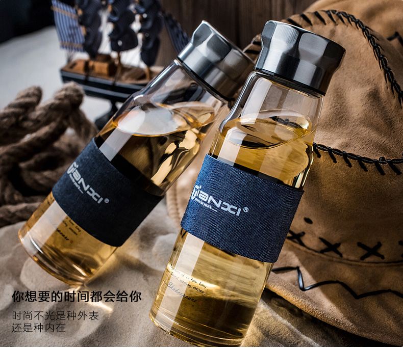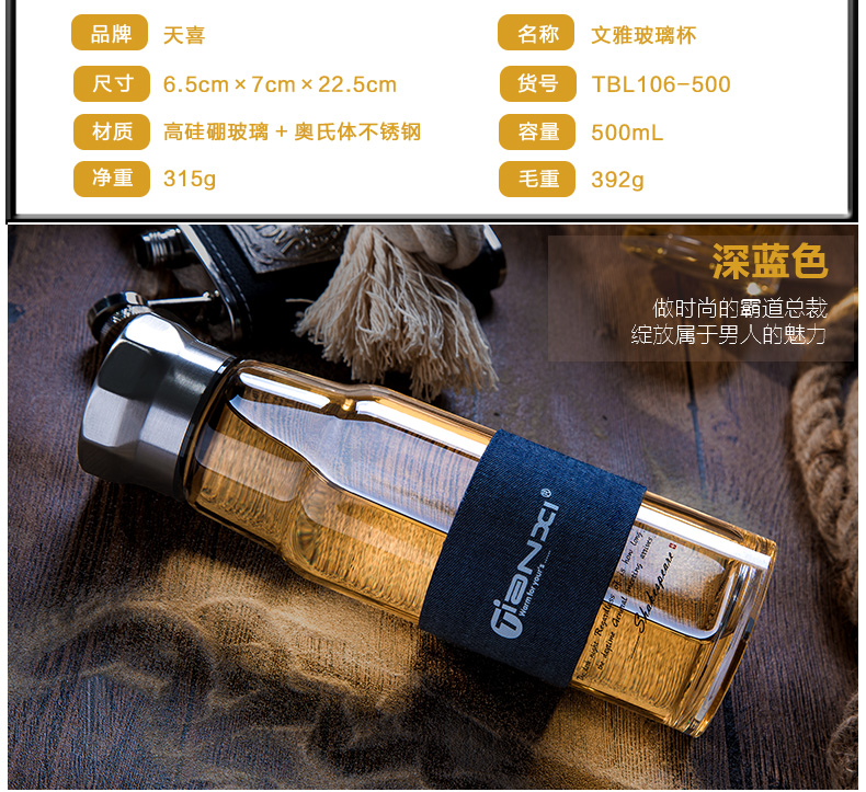 深藍色天喜玻璃杯便攜隨手杯耐熱水杯高端商務泡茶杯車載喝水杯子水瓶男