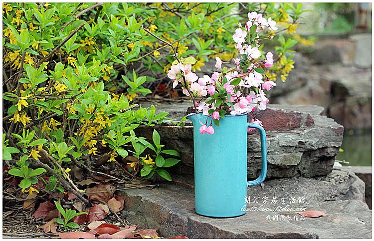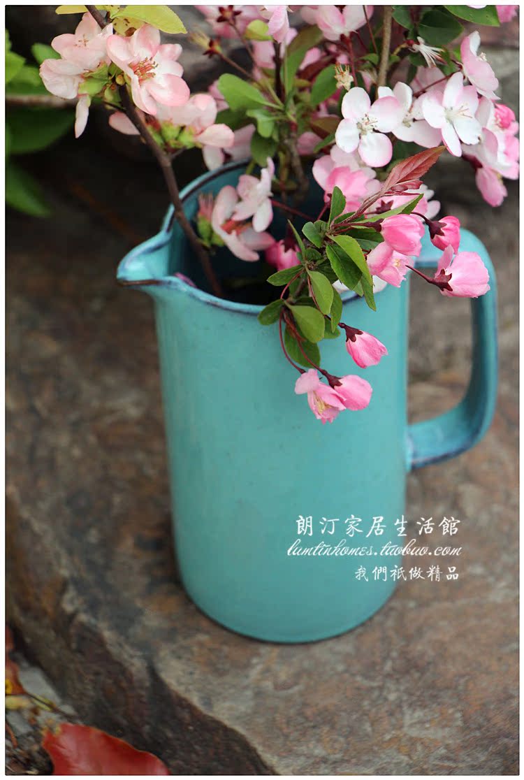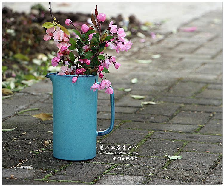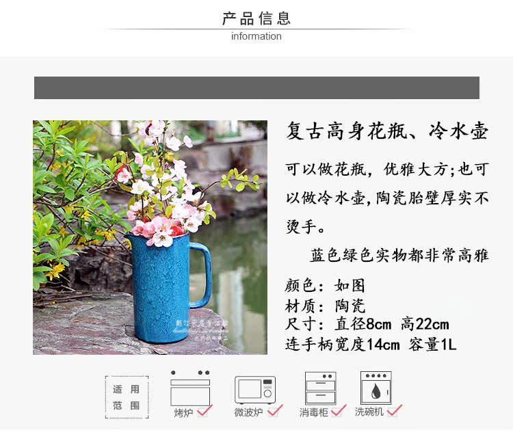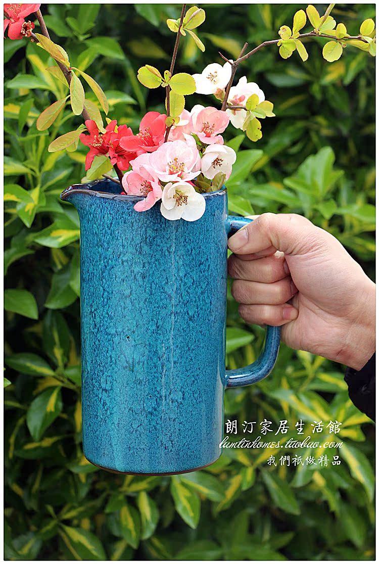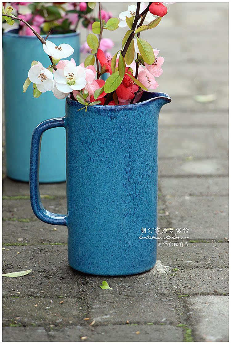 偏藍款地中海復古花瓶陶瓷擺件藍色客廳臺面插花擺件冷水壺牛奶壺不燙手