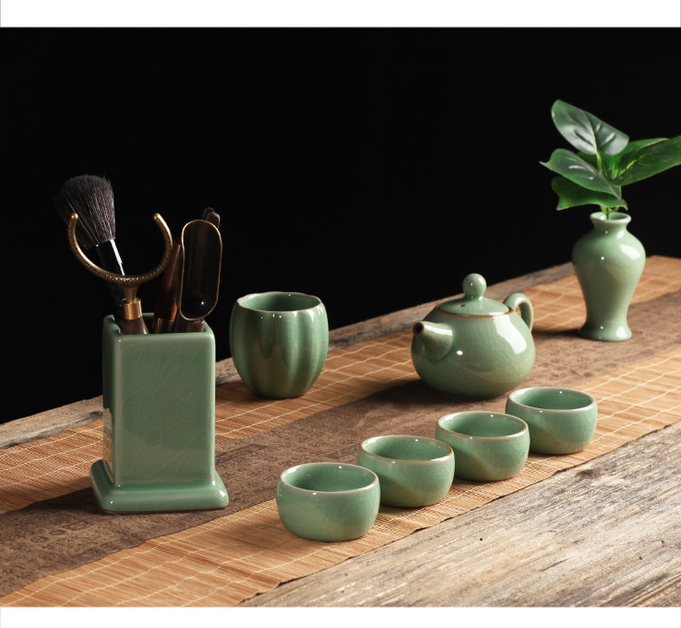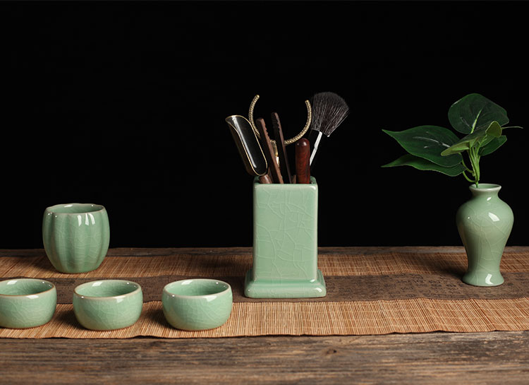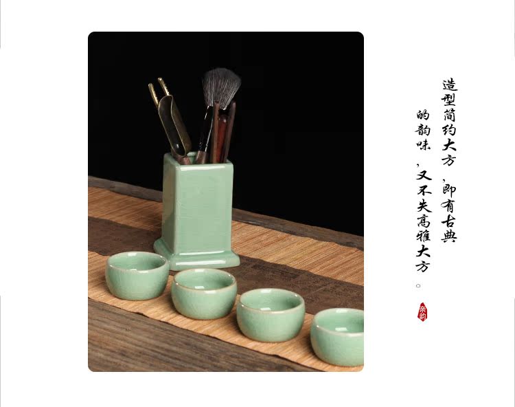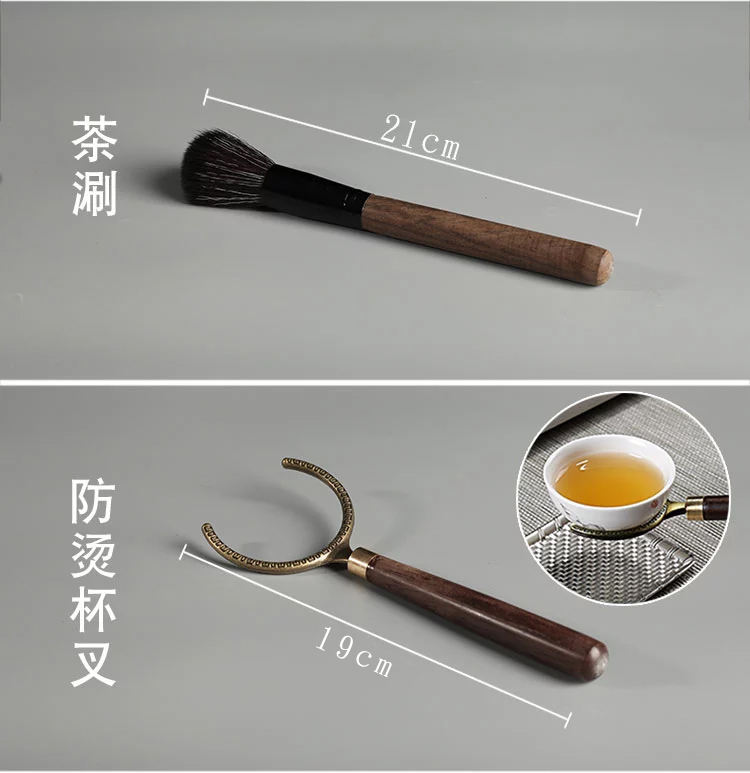 哥窯粉青做線親韻 黑檀木實木功夫茶具茶道六君子套裝茶藝荼組合茶盤擺件配件