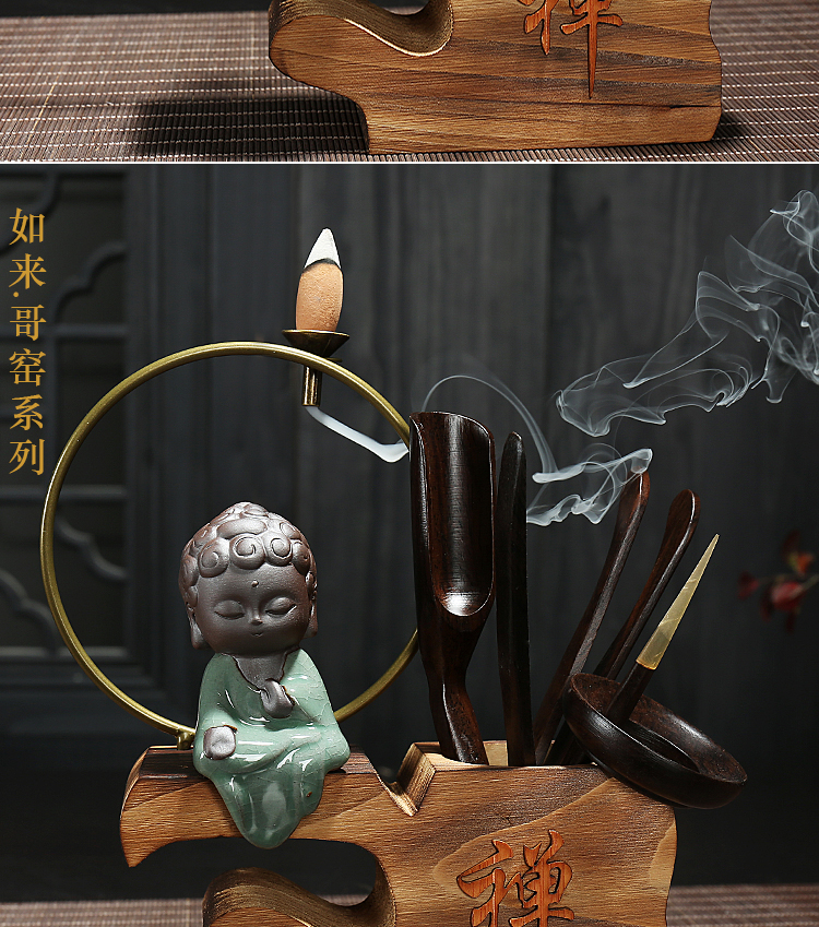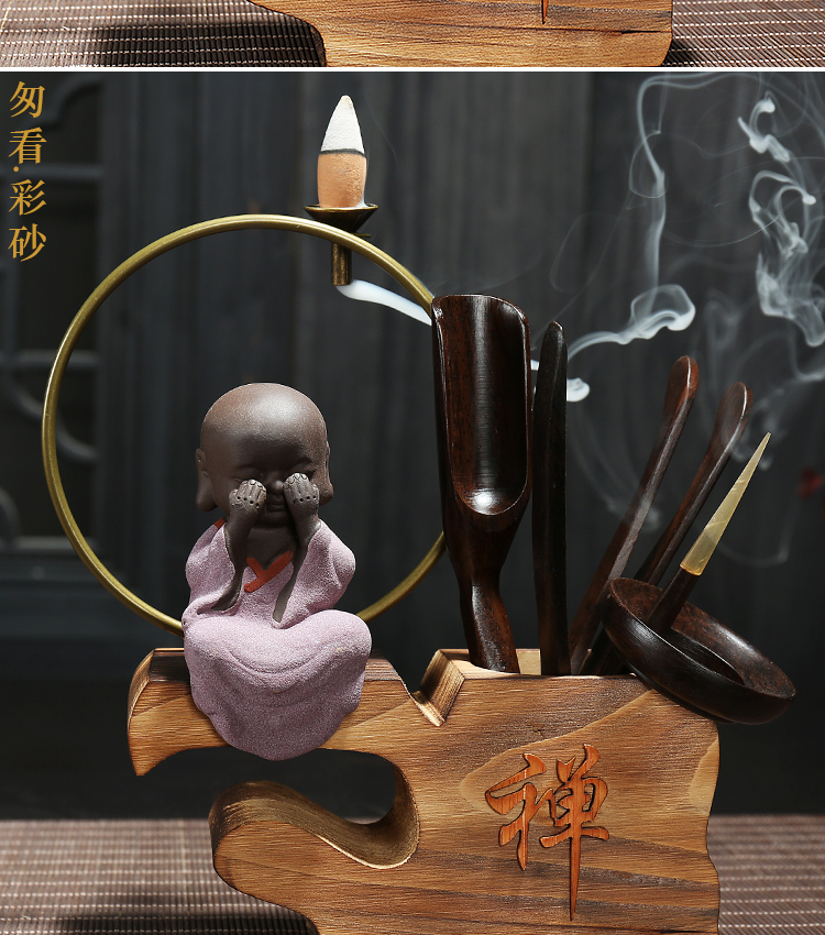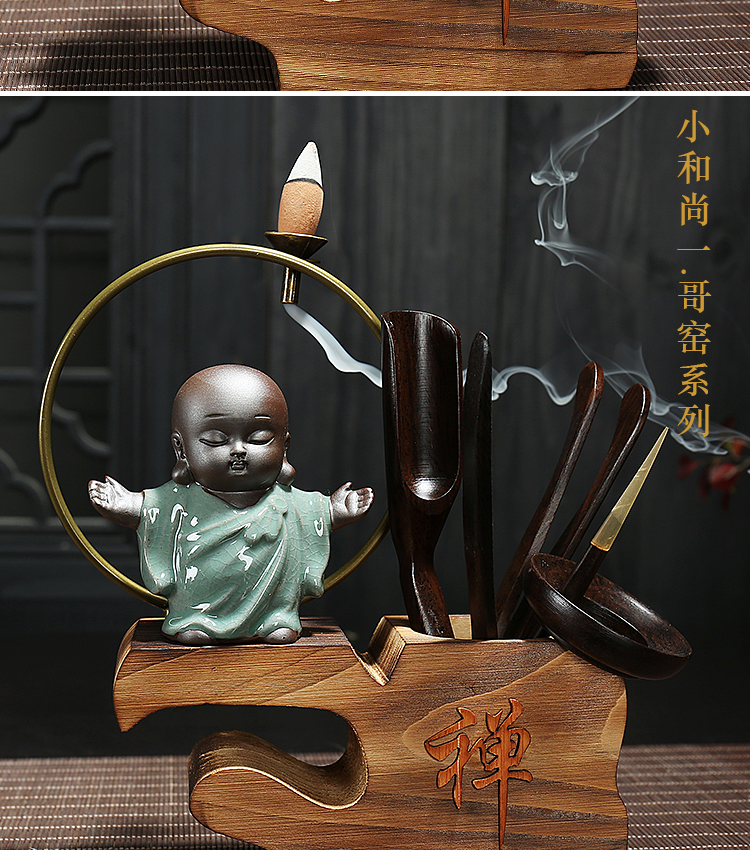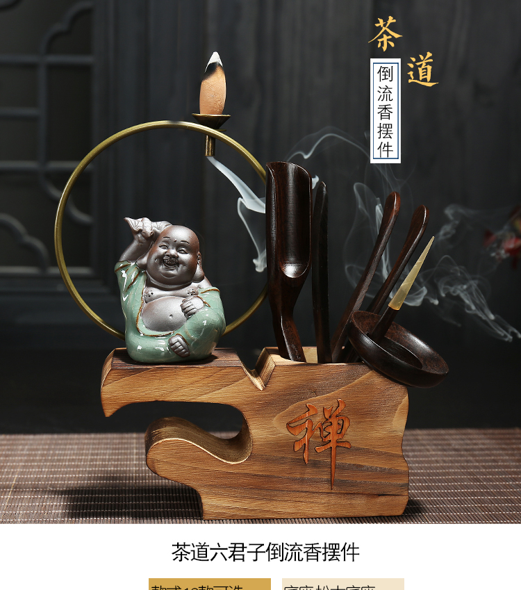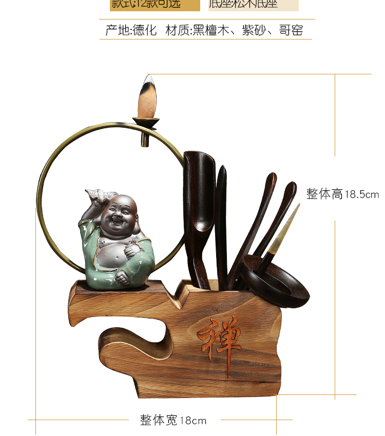 哥窯悟空(送香+筆+茶巾)紫砂倒流香茶寵擺件茶道六君子套裝黑檀實木功夫茶具配件組合