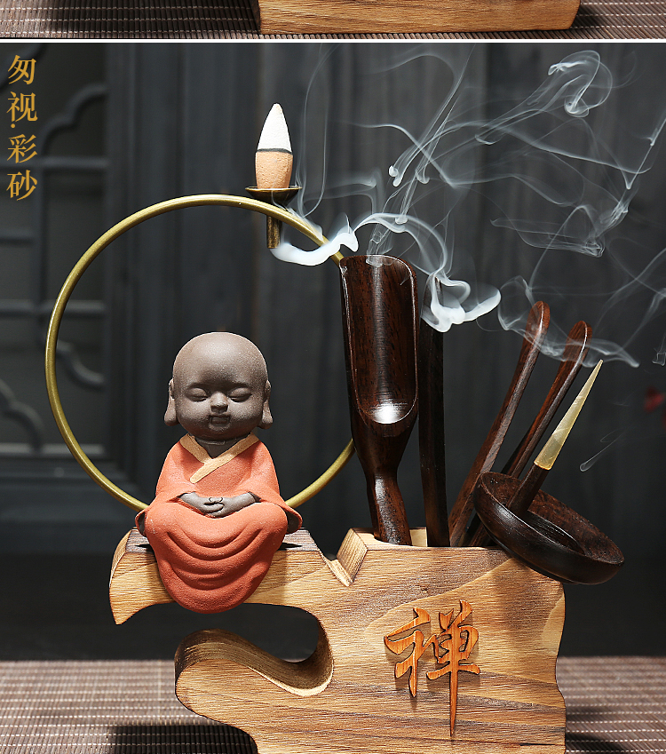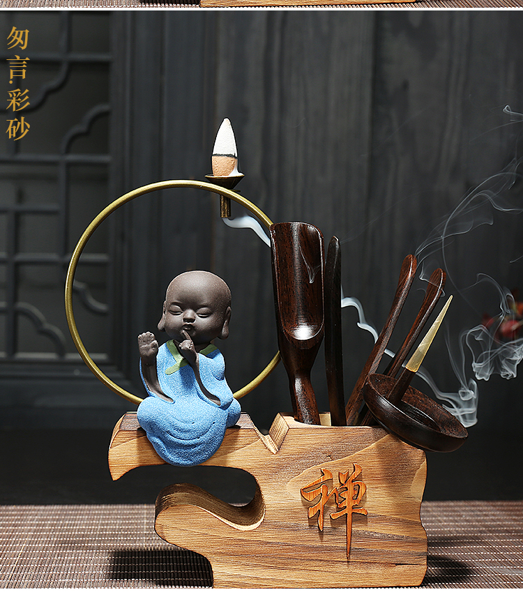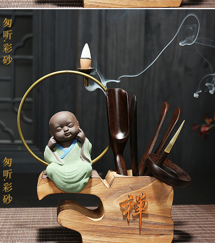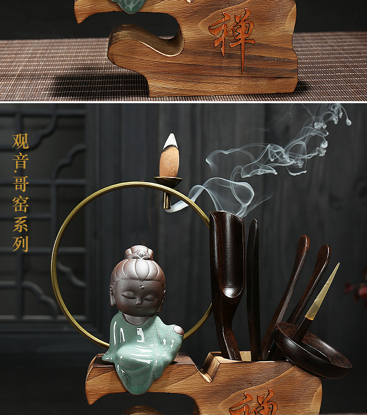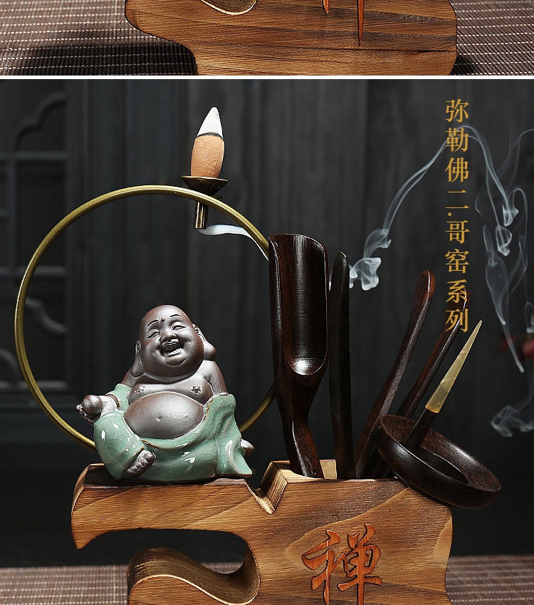 哥窯悟空(送香+筆+茶巾)紫砂倒流香茶寵擺件茶道六君子套裝黑檀實木功夫茶具配件組合