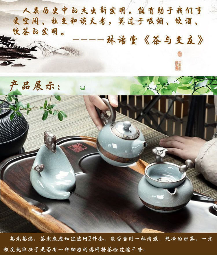 哥窯汝窯茶漏茶濾陶瓷 茶寵擺件哥窯過濾網套裝 高檔功夫茶具茶道配件