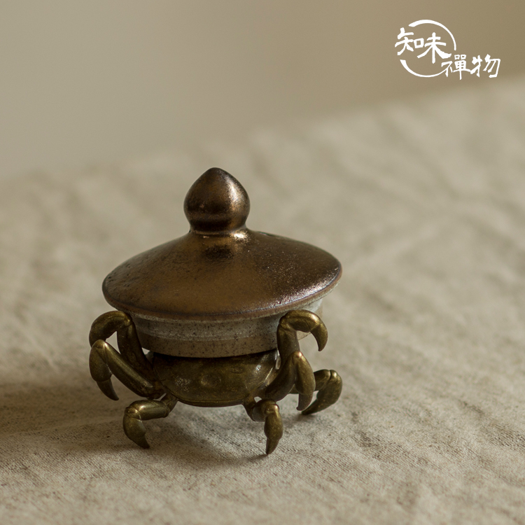 知味禪物純銅螃蟹蓋置精品茶玩茶寵擺件茶具茶道零配件茶席小擺件