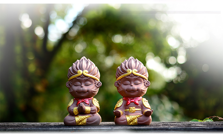 百戰百勝陶迷齊天大圣孫悟空猴子黑色金箍棒金箍圈陶瓷擺件茶寵車載小號