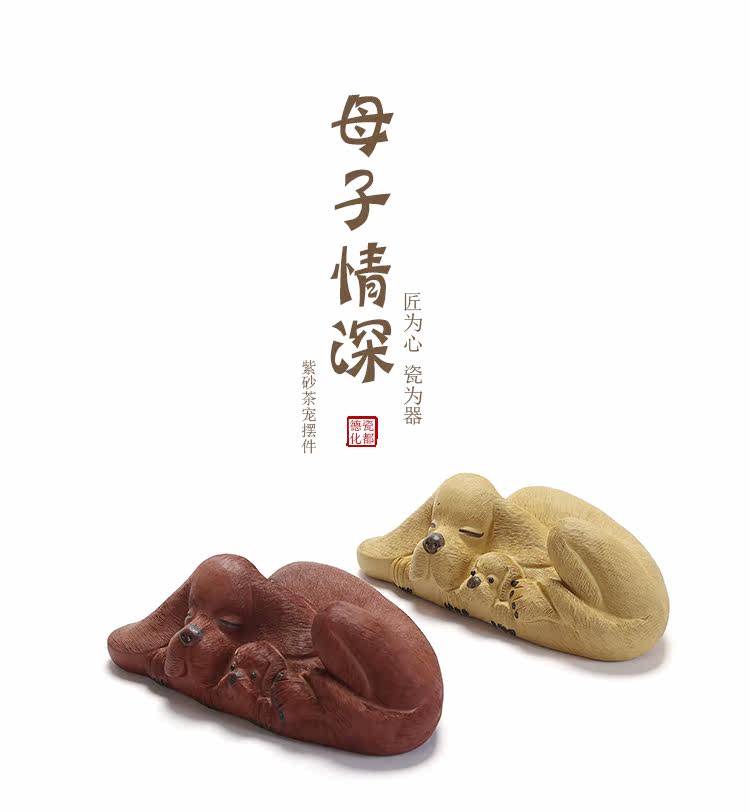 母子情深(黃泥)宜興紫砂茶寵擺件雕塑 母子情深 紅泥段泥拉毛 精致做工