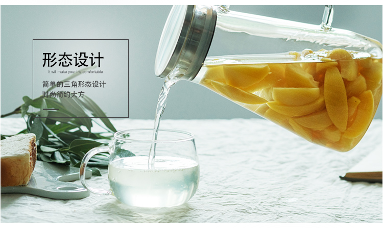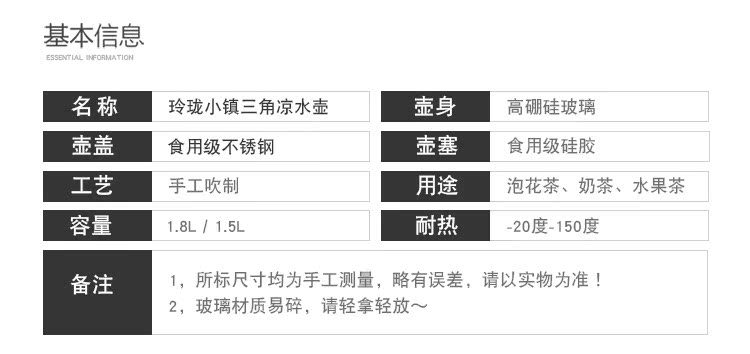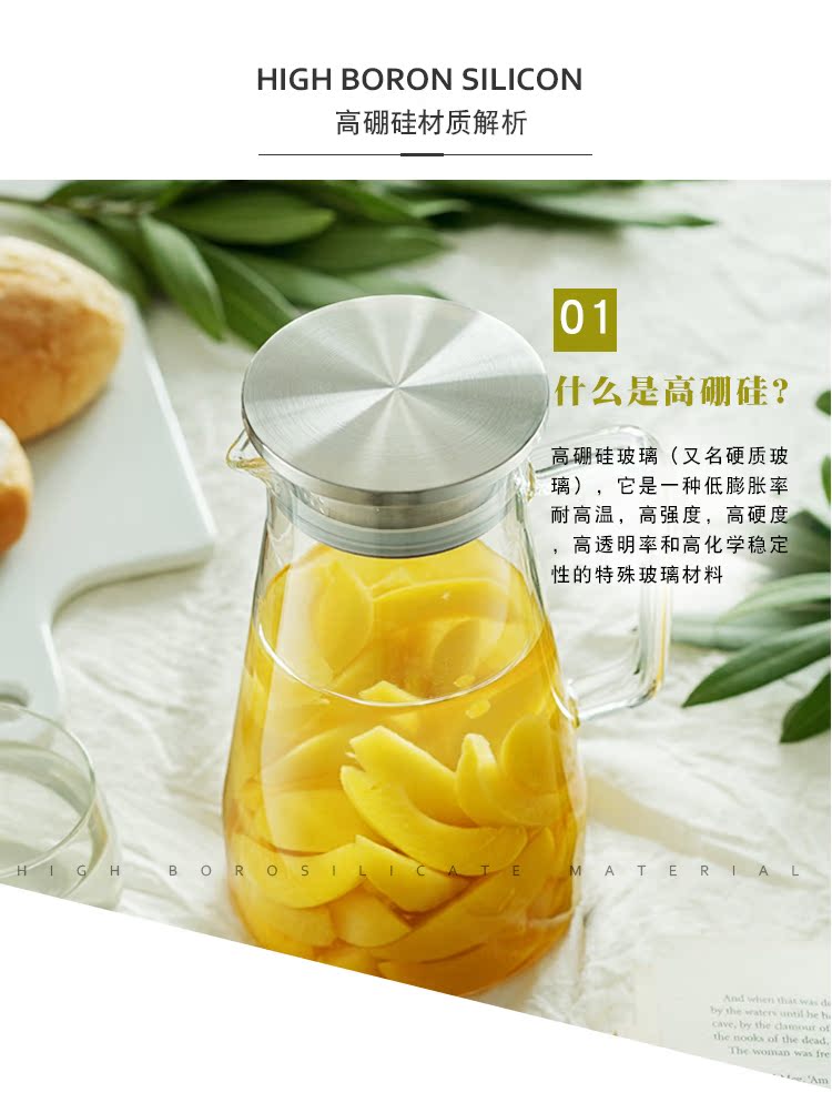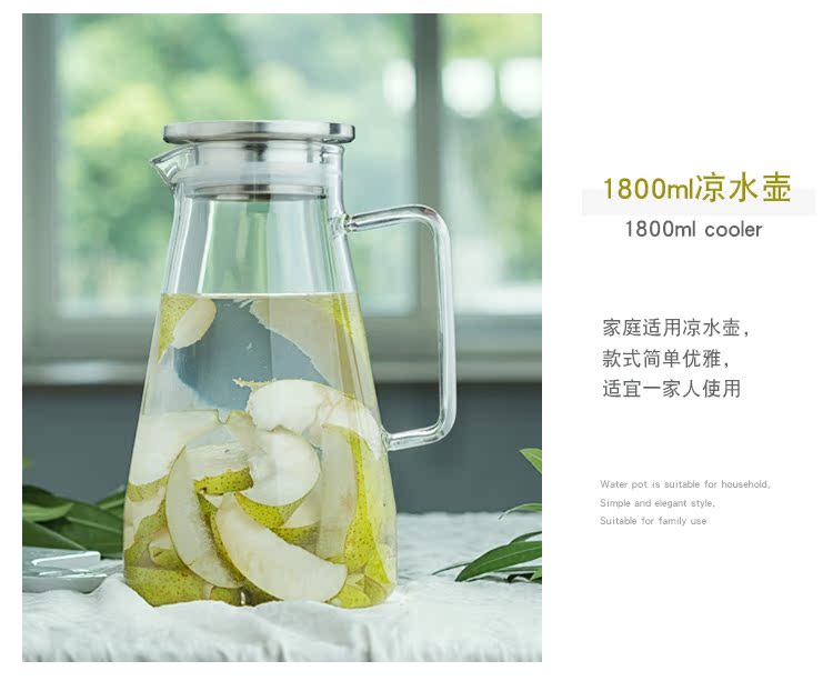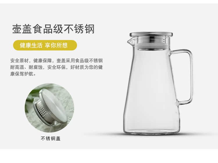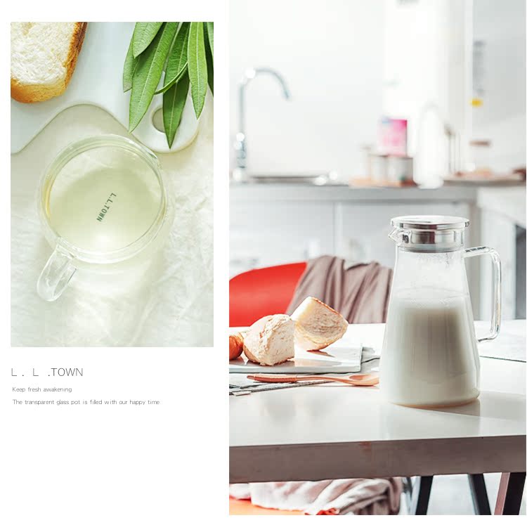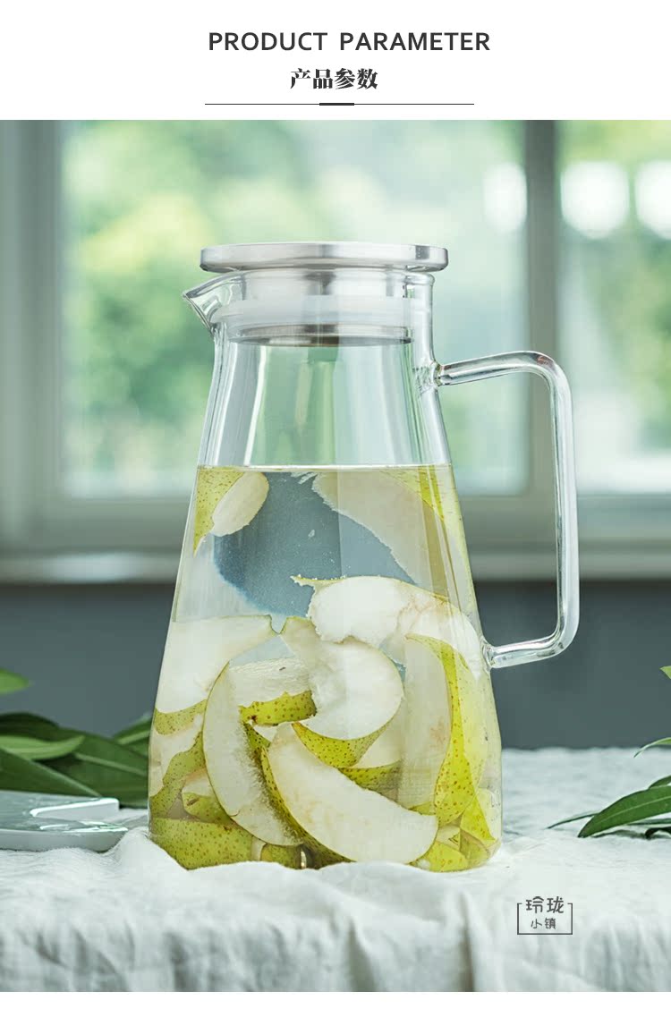 大號1800ml涼水壺一個玲瓏小鎮家用客廳大號不銹鋼蓋耐熱玻璃涼水壺涼水杯水壺水杯套裝