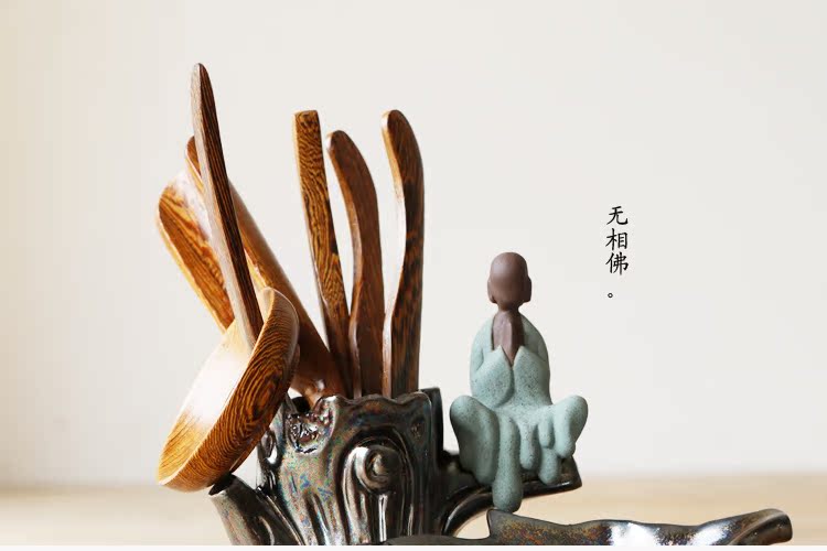一葉菩提(雞翅木)套裝禪意茶道六君子套裝陶瓷黑檀木雞翅木茶夾功夫茶具 茶寵擺件精品