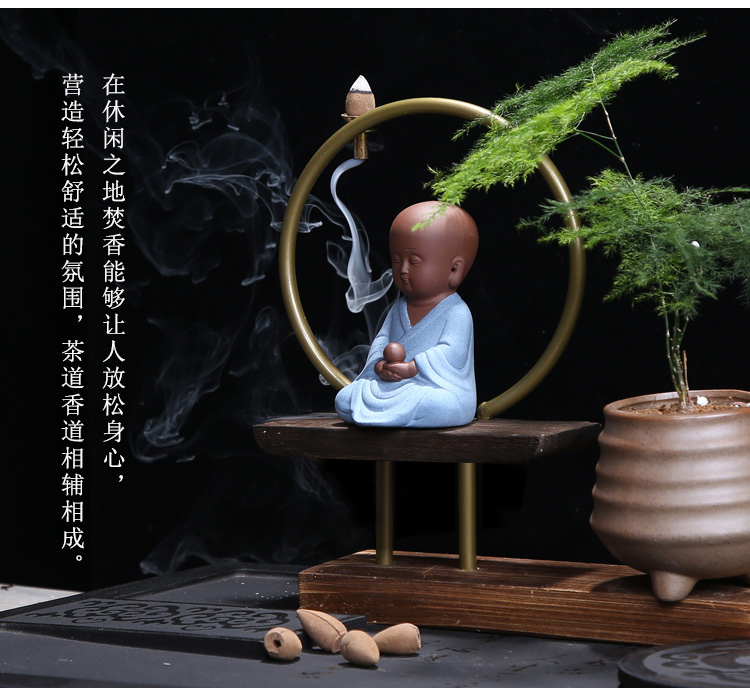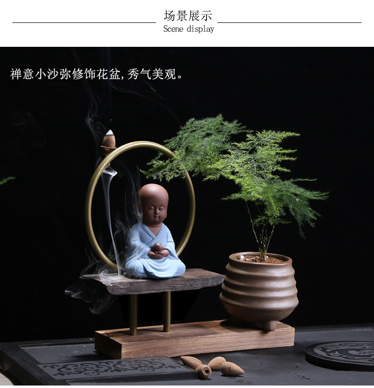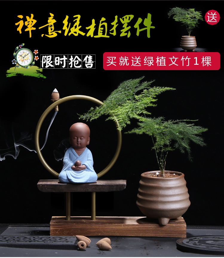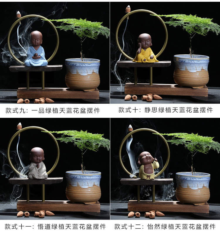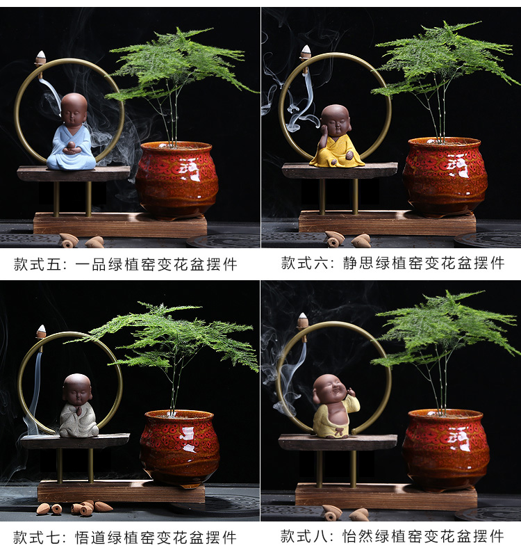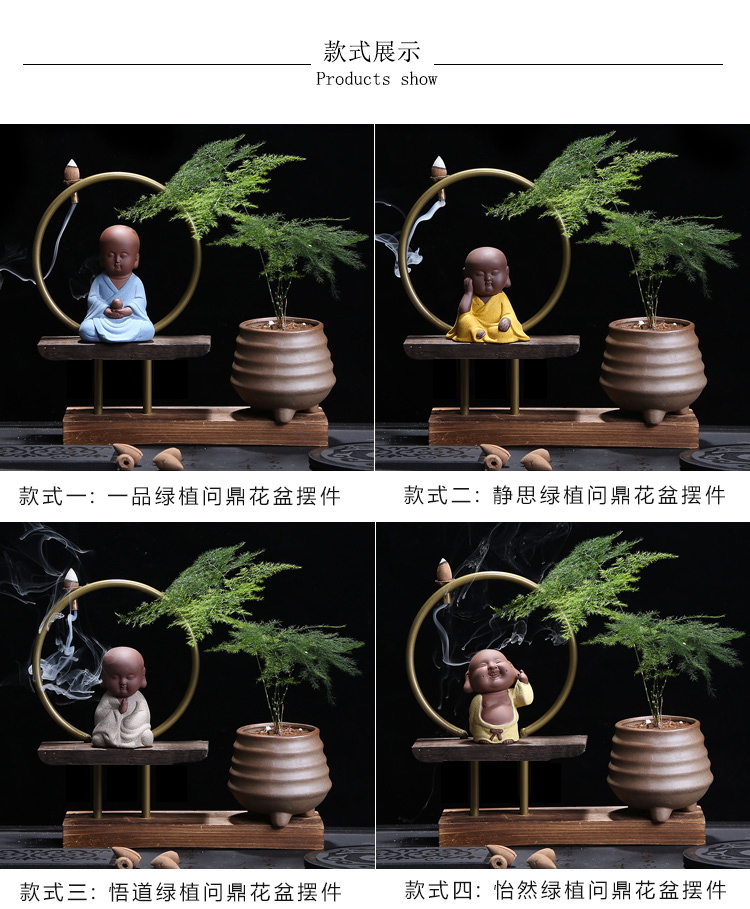 01-一品綠植問鼎花盆擺件多肉紫砂茶寵擺件精品 可養桌面植物迷你小和尚禪意花盆倒流香爐