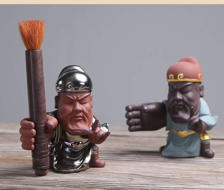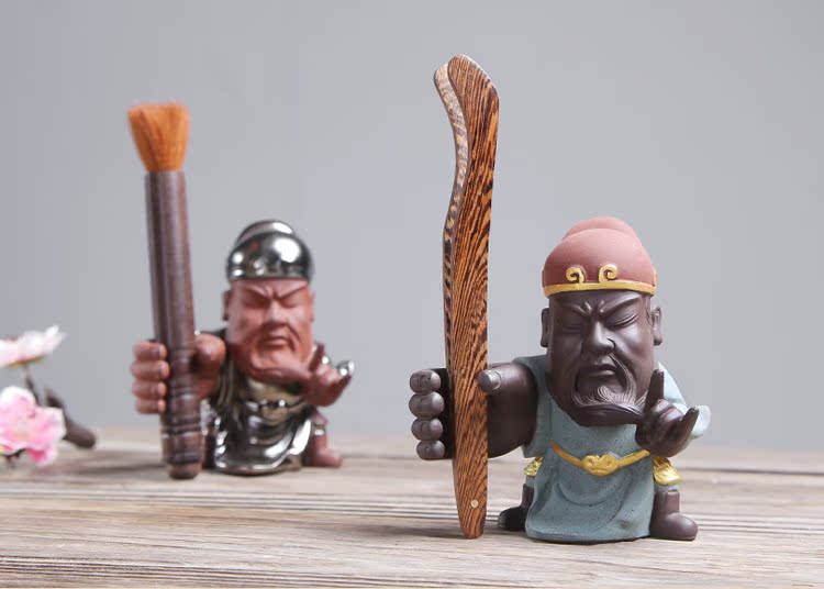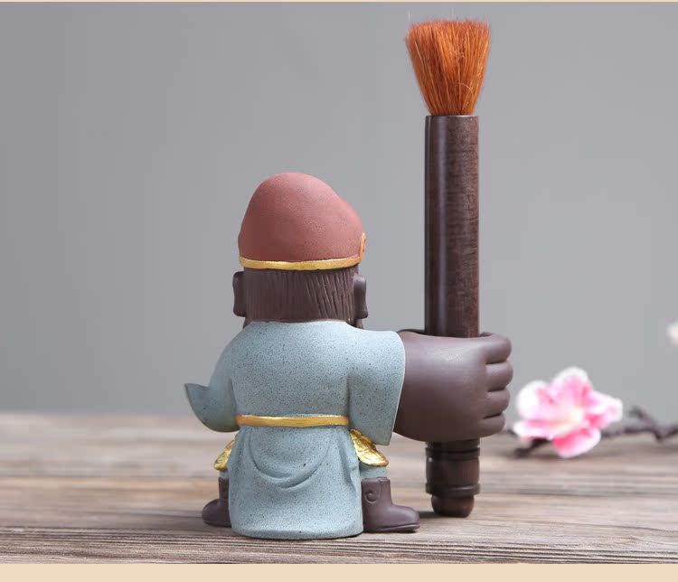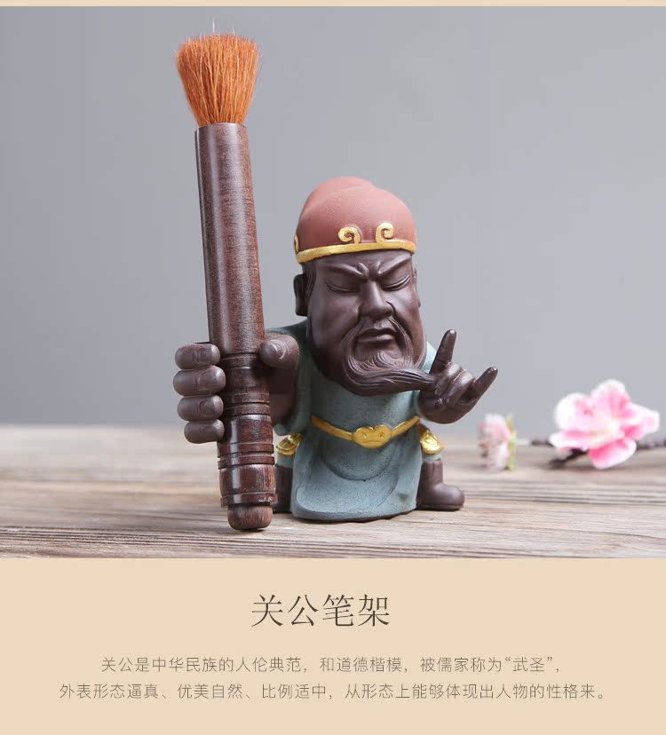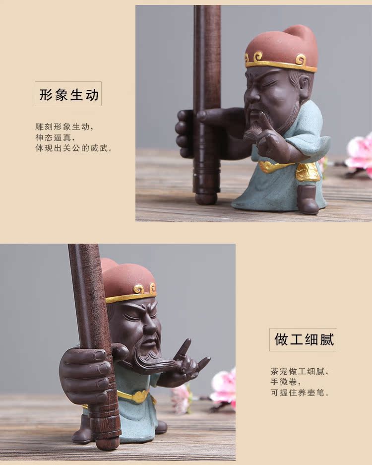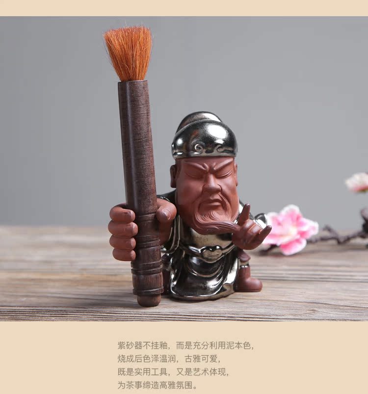 關公洗筆托(彩砂)茶道六君子關公茶藝養壺筆茶具配件桌面上飾品茶寵擺件精品 可養