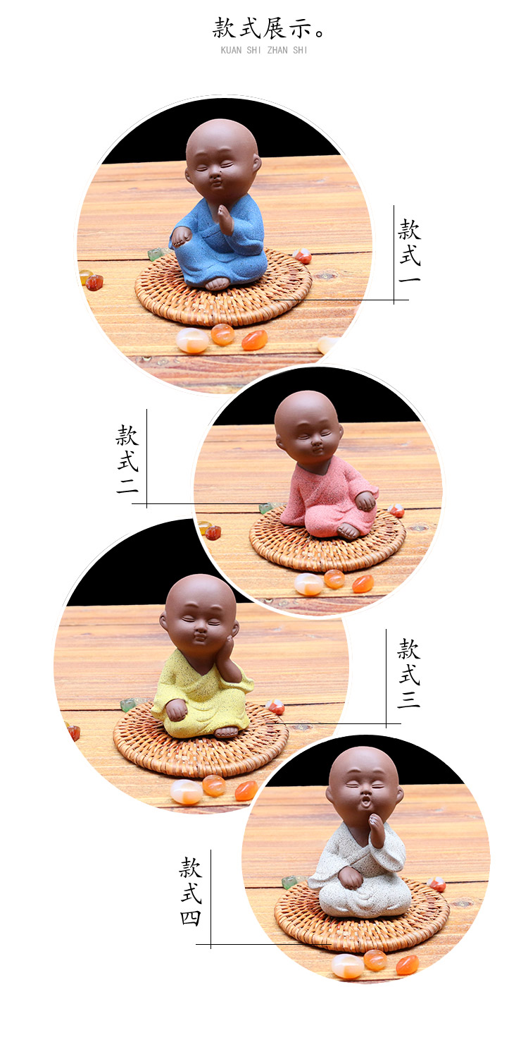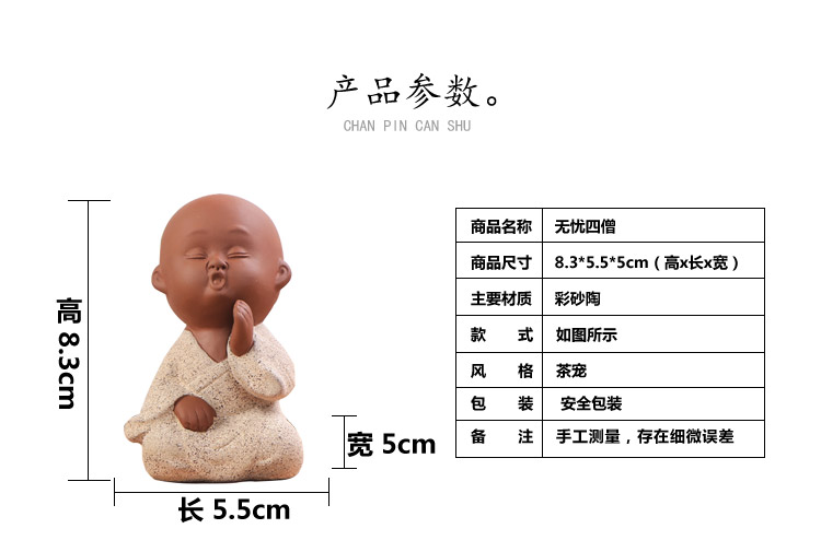 藍袍小僧至信堂無憂四僧小茶寵手工彩砂陶茶玩擺件工藝品功夫茶具茶道配件