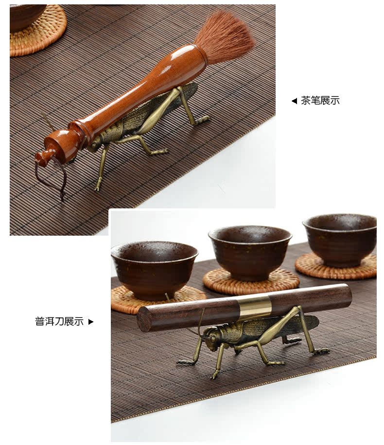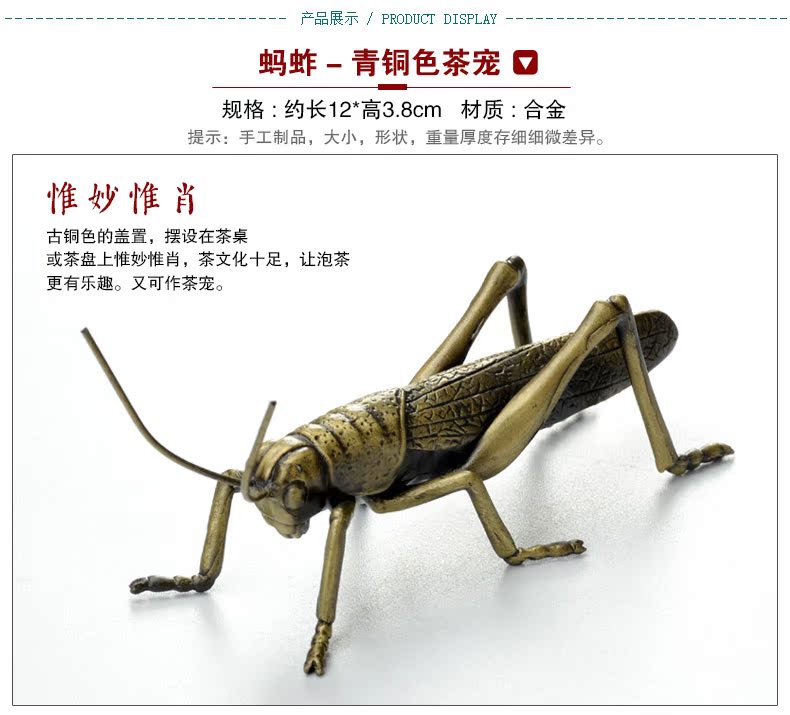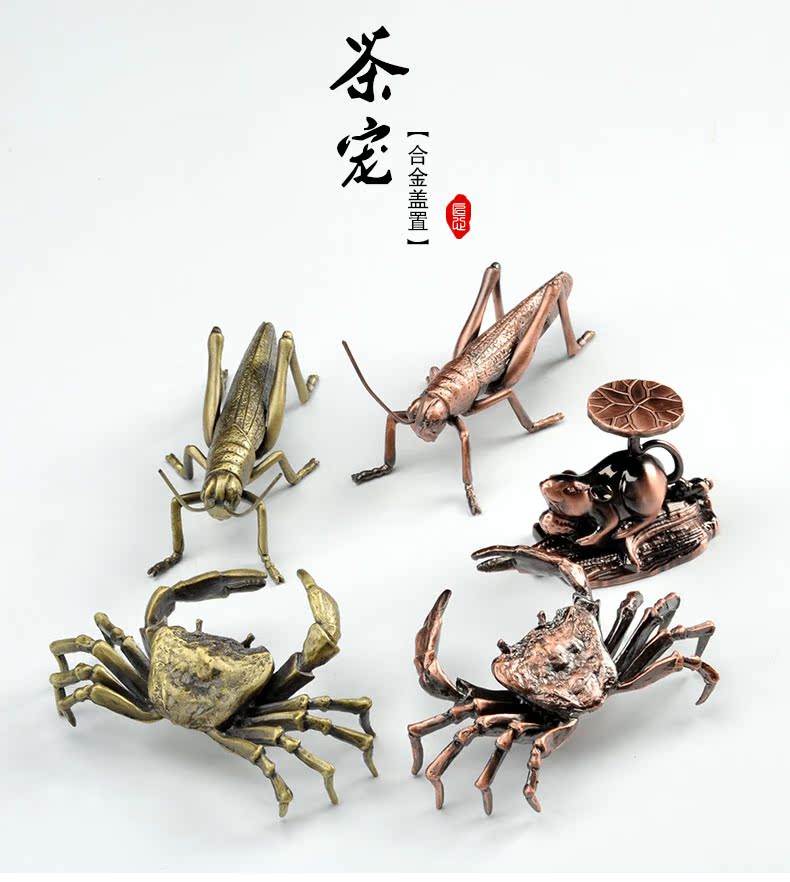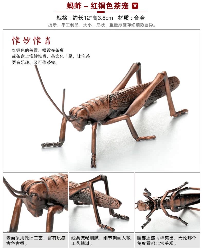 螞蚱-青銅色茶寵混合金屬 動物茶寵 擺件創意 螃蟹螞蟥功夫茶具新款可養小茶玩