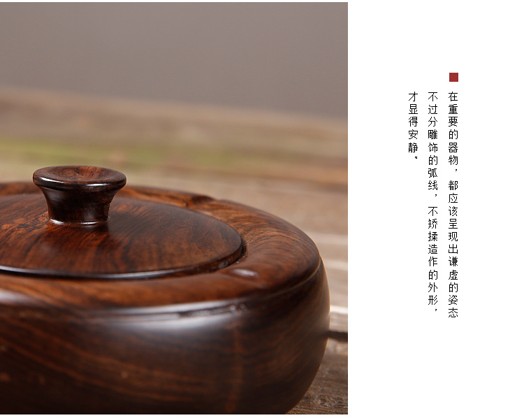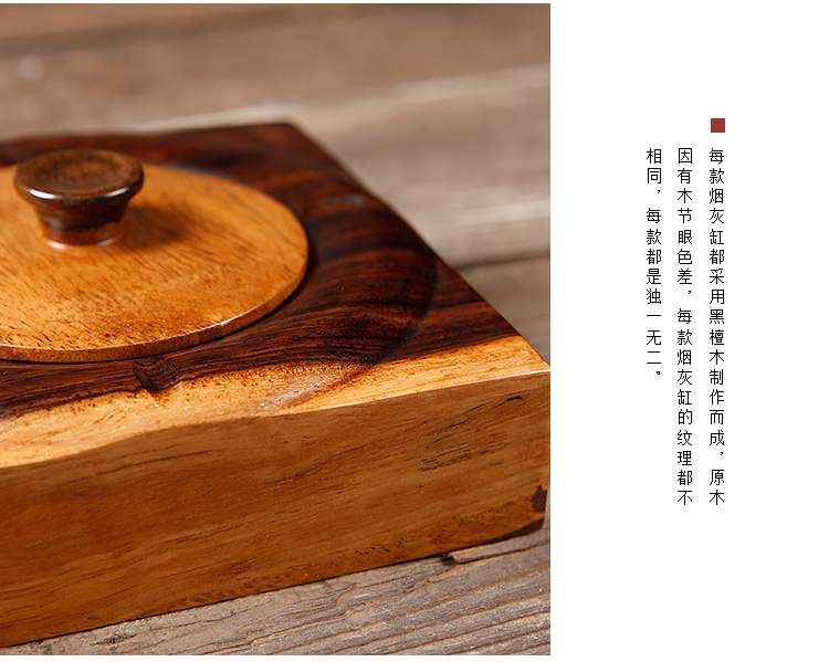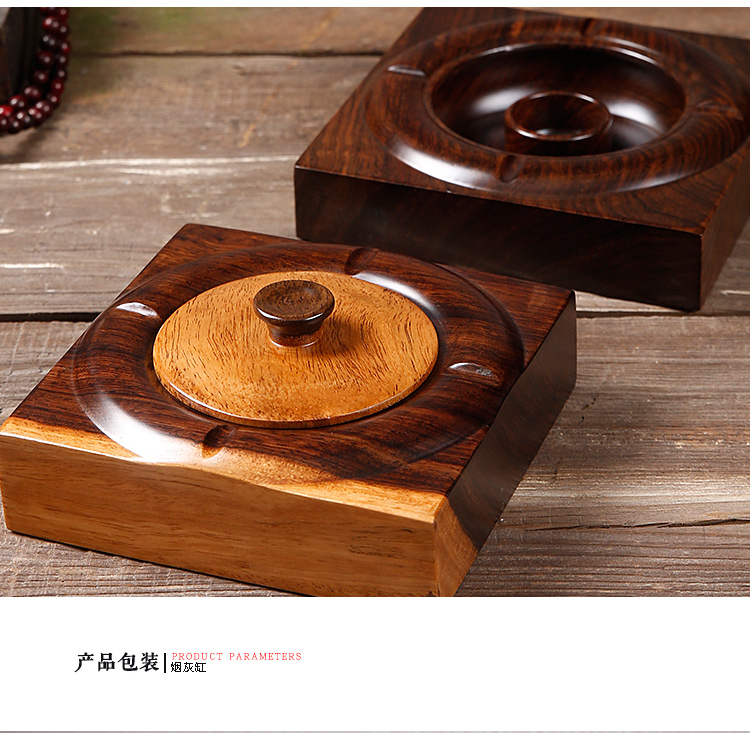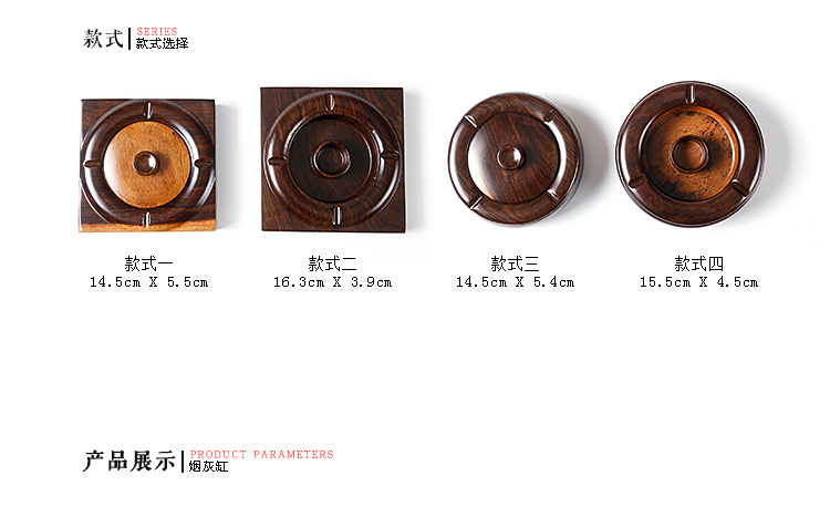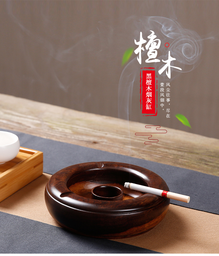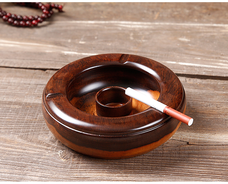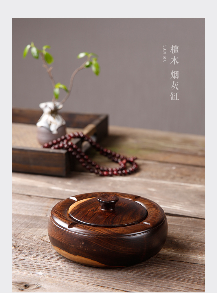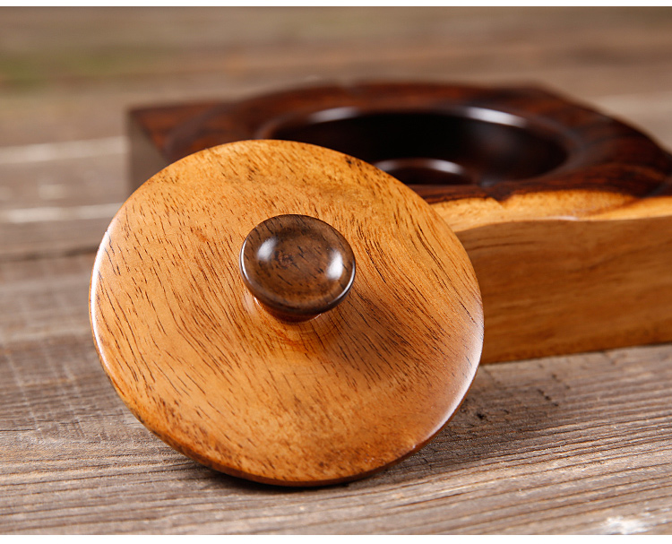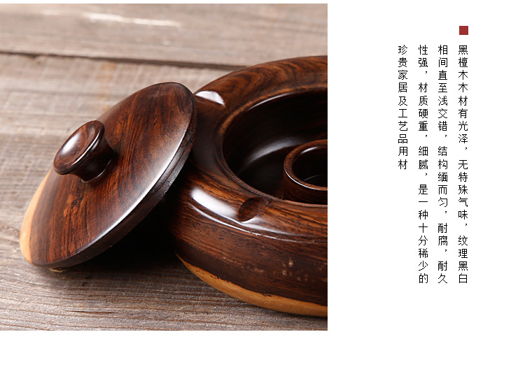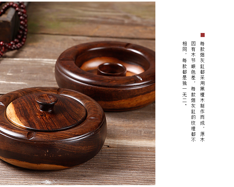 圓形(帶蓋)長涇14.5 高5.4黑檀實木大號帶蓋煙灰缸 原木木質煙缸 創意個性茶道配件茶具擺件