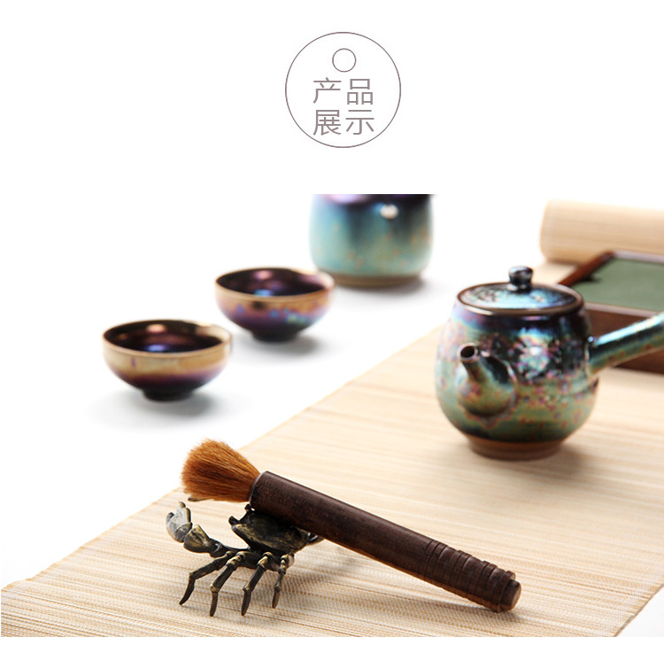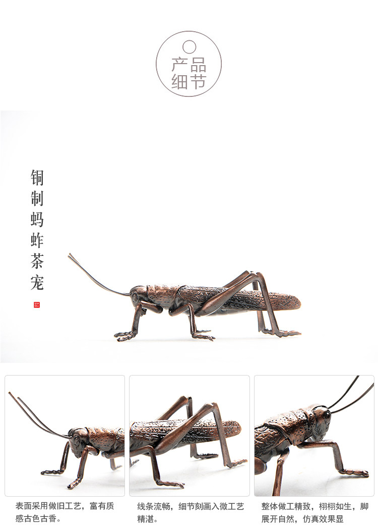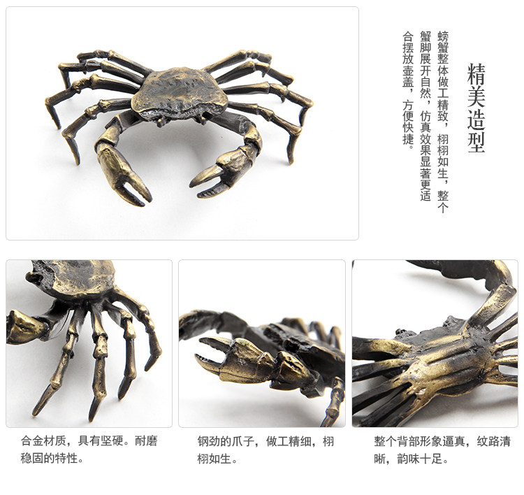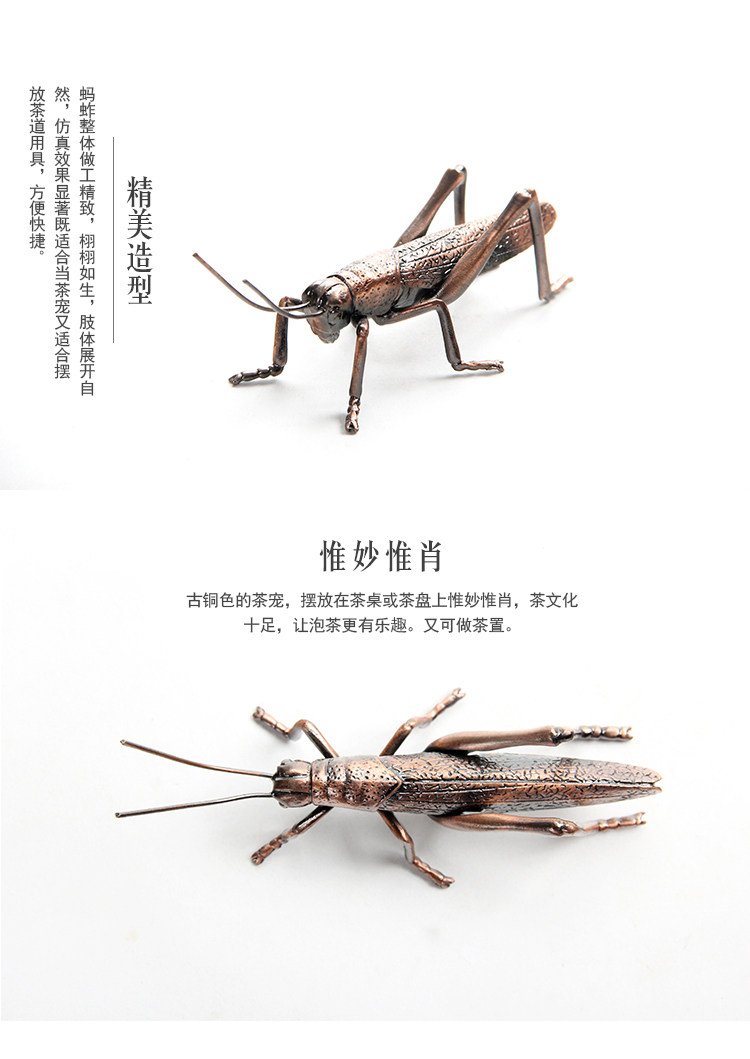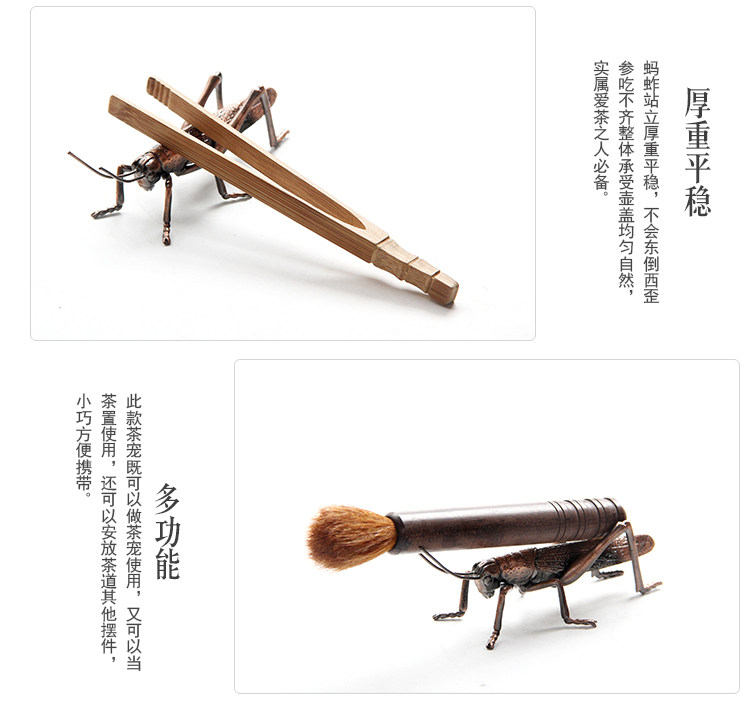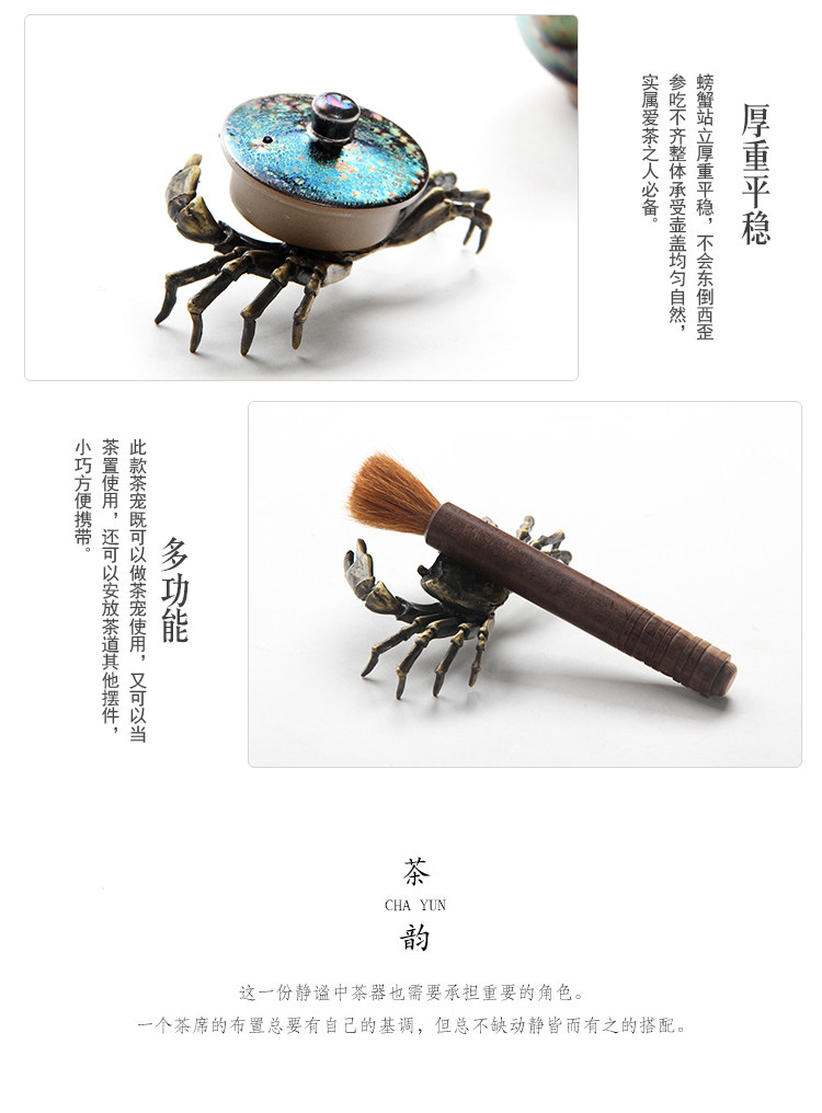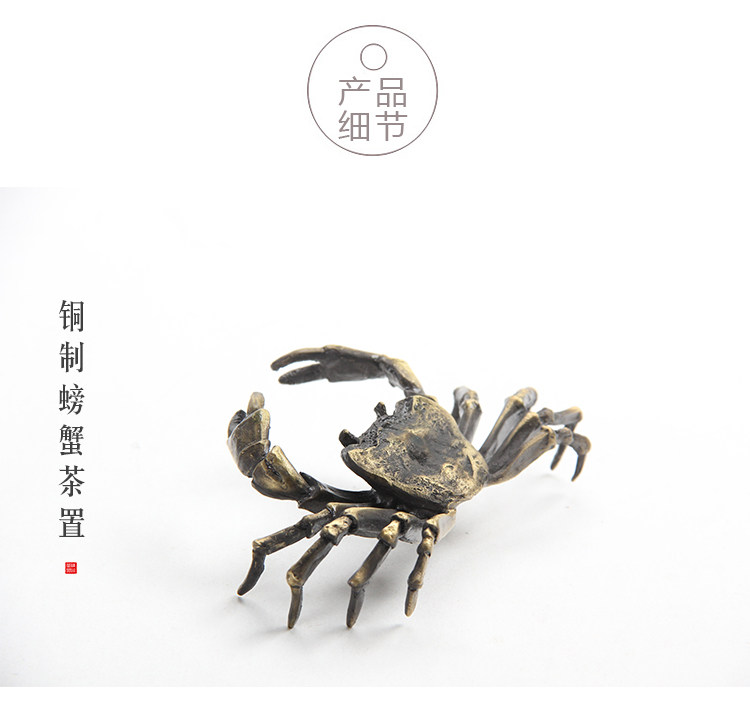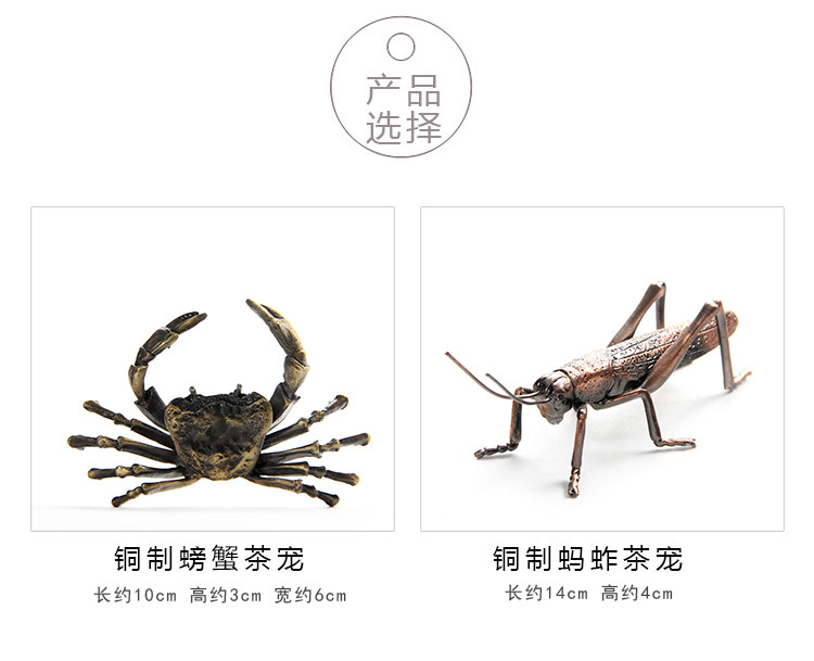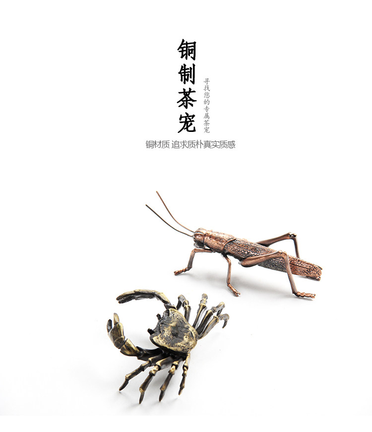 款式一手工蓋托純銅螃蟹螞蚱蓋置仿古銅色茶道擱架日本茶席擺件金屬茶寵