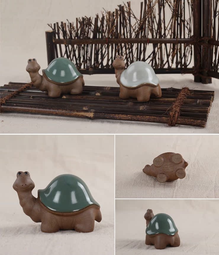 手工制作的一對招財小龜,每只腳下都有美羊角符號“美”噢~非常有寓意,體積小巧 作為茶寵和小擺件都不錯~