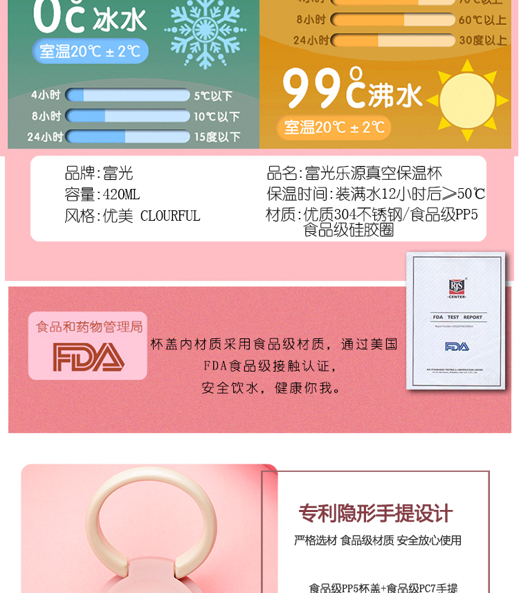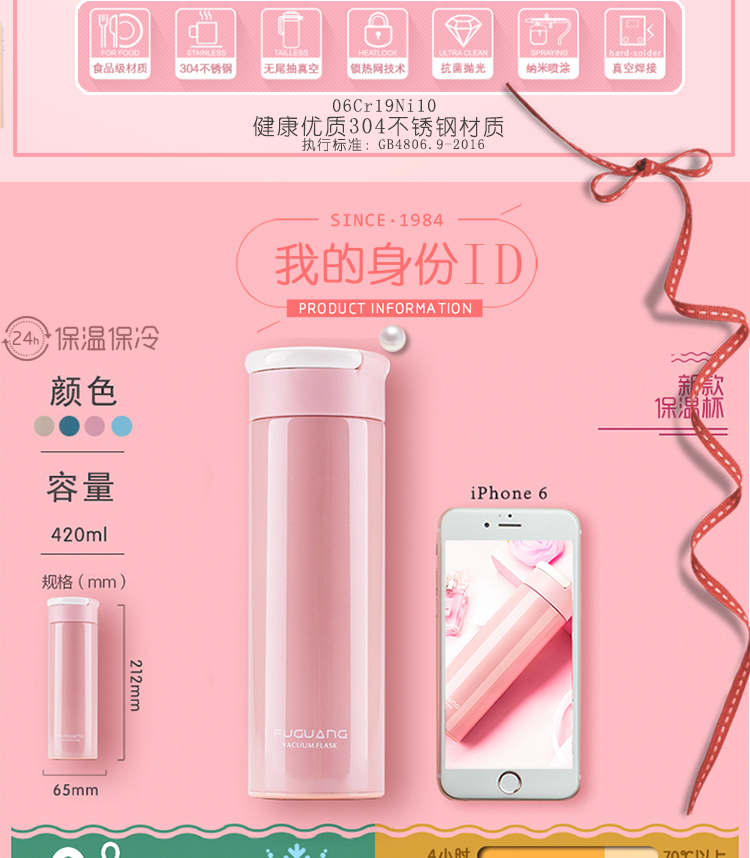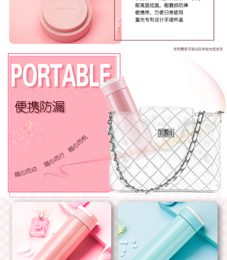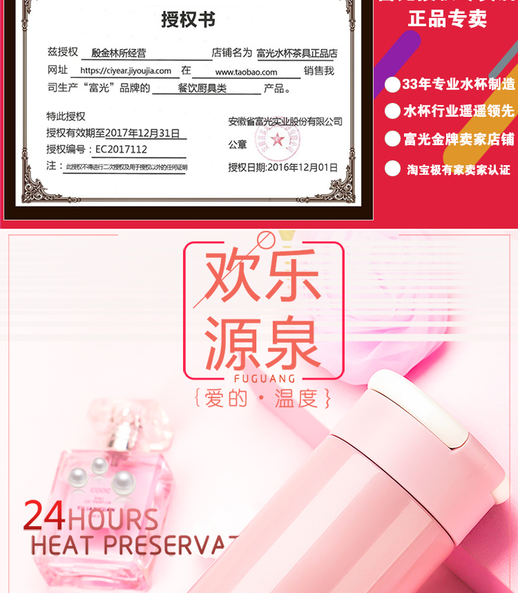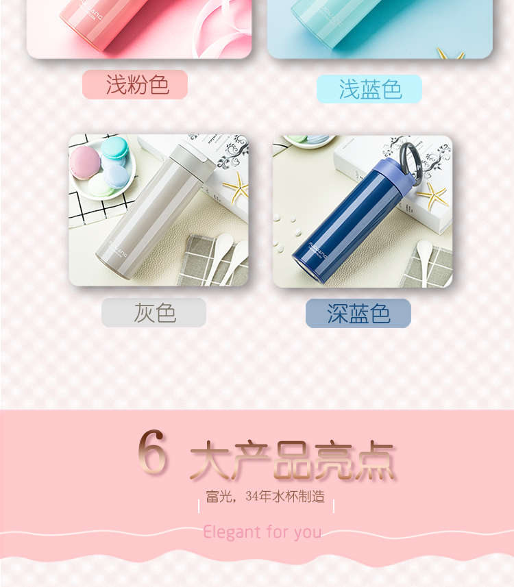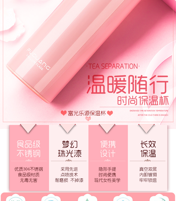 淺粉色富光保溫杯男女士定制帶過濾車載學生水杯 真空304不銹鋼刻字杯子