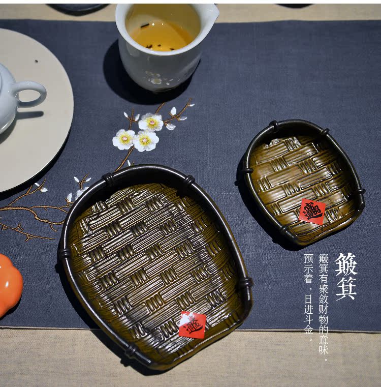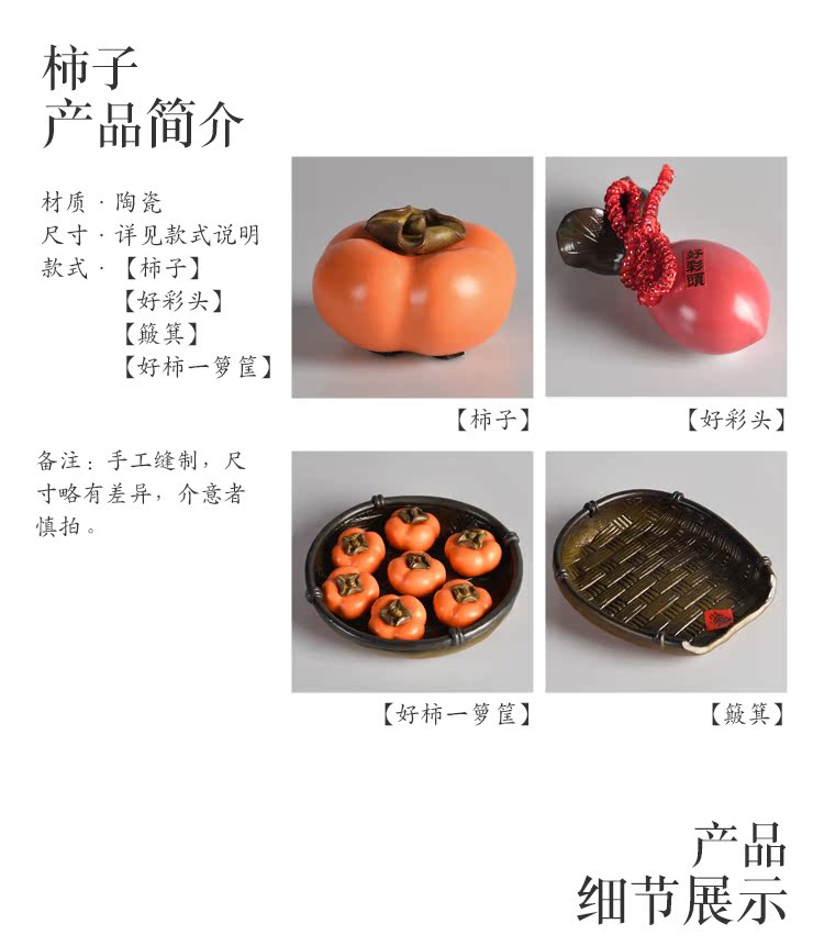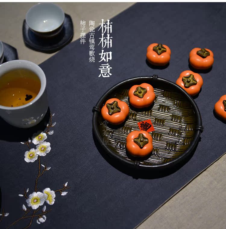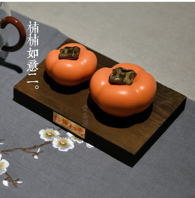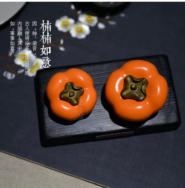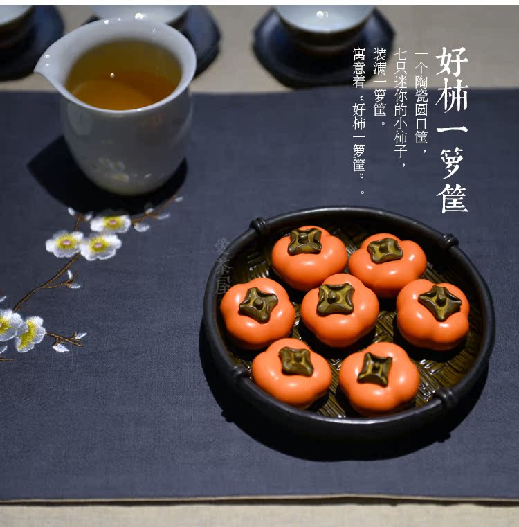 迷你簸箕愛茶屋茶具陶瓷古鎮鶯歌燒柿子擺件事事如意茶寵功夫茶道配件