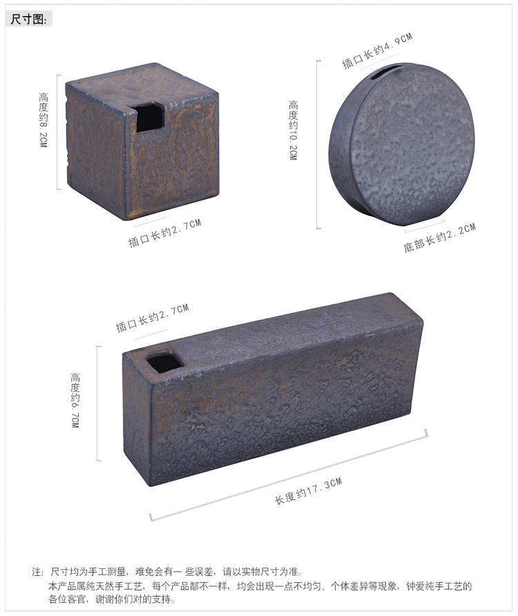 破曉花器創意形粗陶花器圓形磚形陶瓷迷你小花插窯變正方形家居簡約擺件