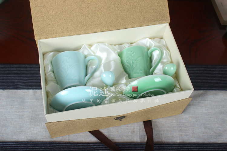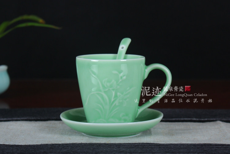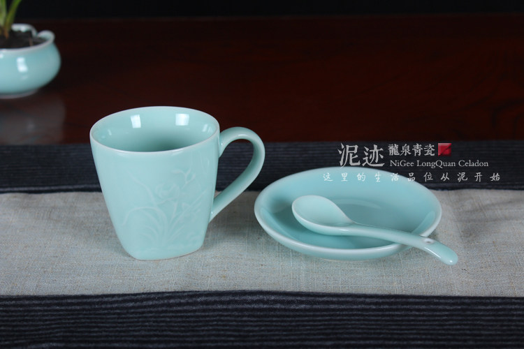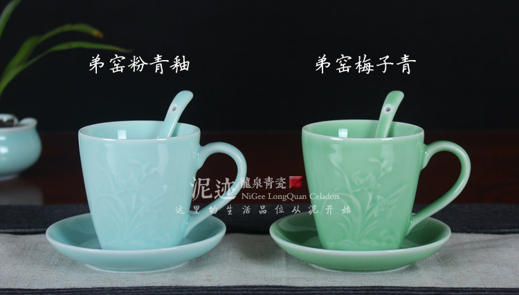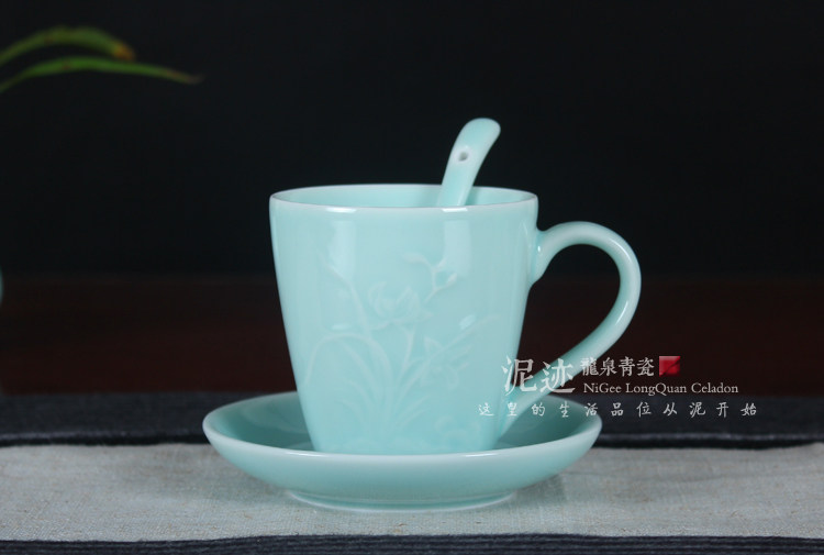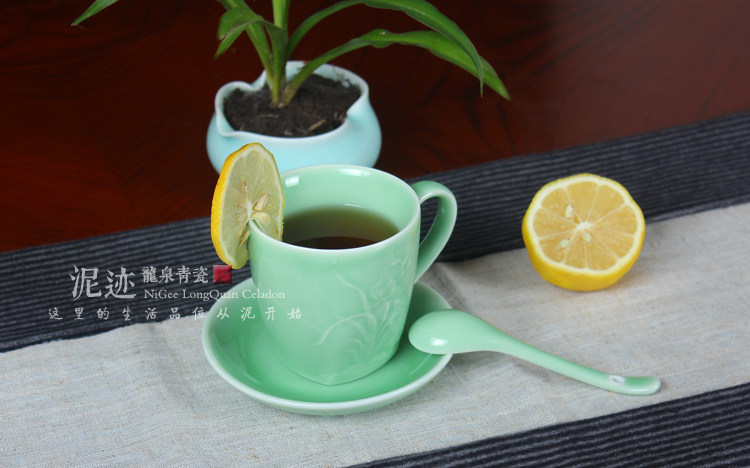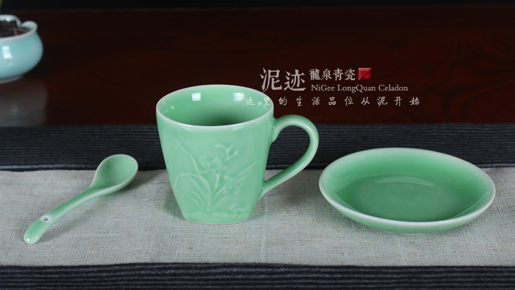 產品名稱:蘭花咖啡杯三件套組 規格:杯子-高7.8cm 口徑7.5cm 足徑5cm 容量約為180ml 底碟-直徑11.5cm 高2cm 足徑6.7cm 勺子-長11.5cm 寬2.7cm 產地:·龍泉 品質等級:優 工藝:弟窯梅子青、弟窯粉青釉 包裝:單個簡易防震包裝,兩個可以選購禮盒詳詢客服 場景展示