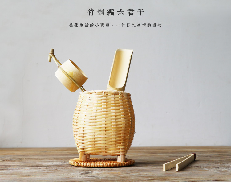 竹制編六君子手工茶道六君子套裝竹制藤編茶藝組合茶具零配件茶盤擺件功夫茶具