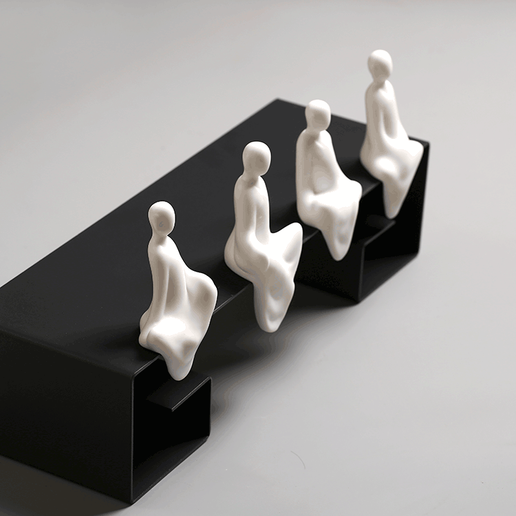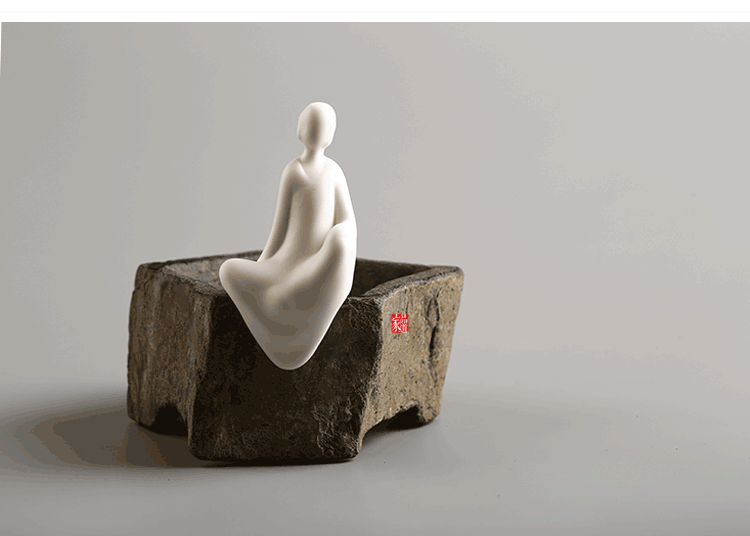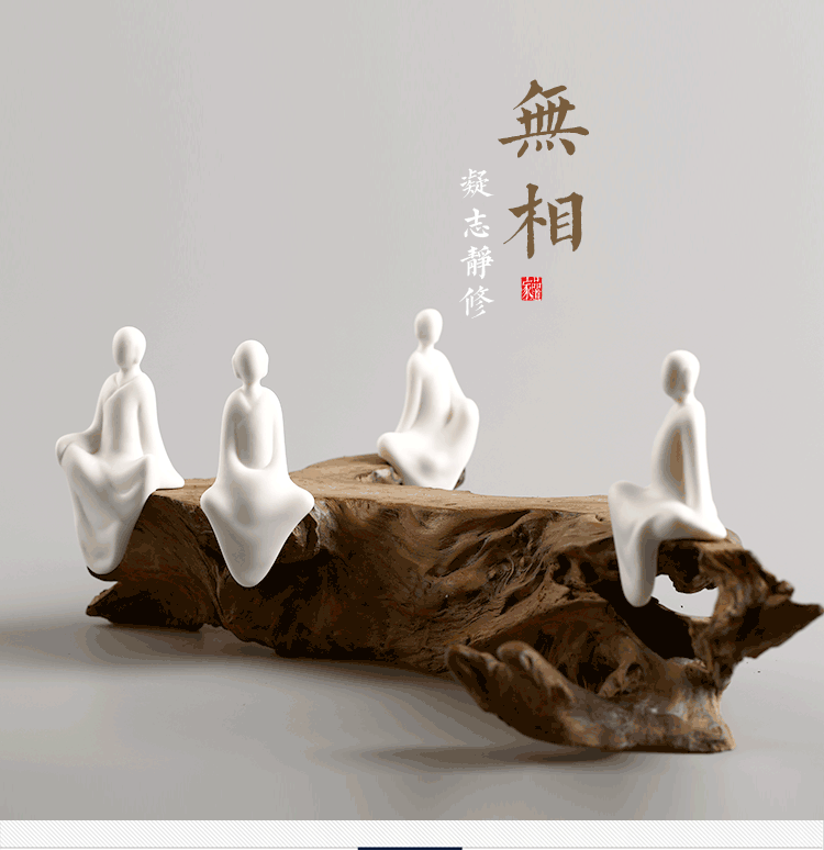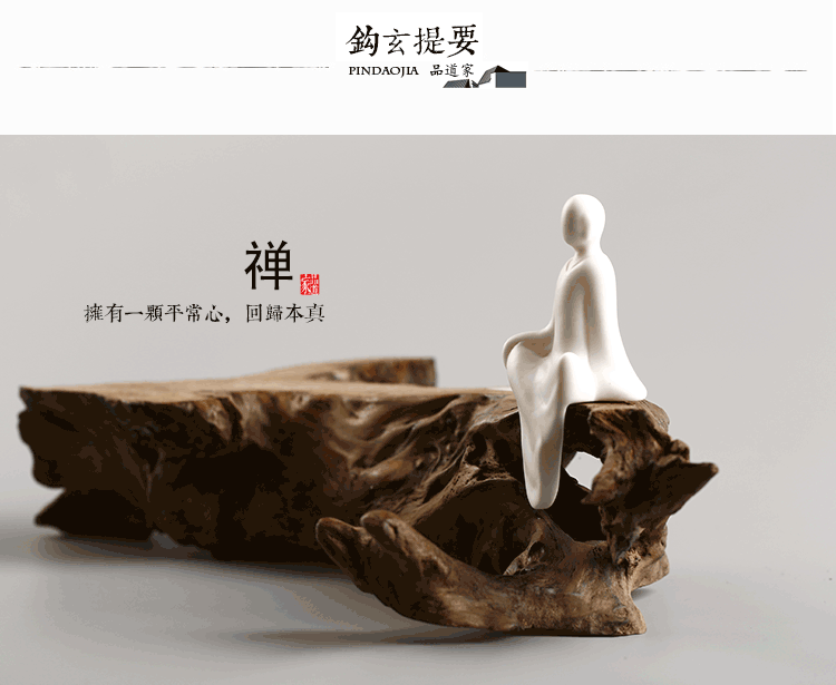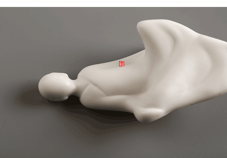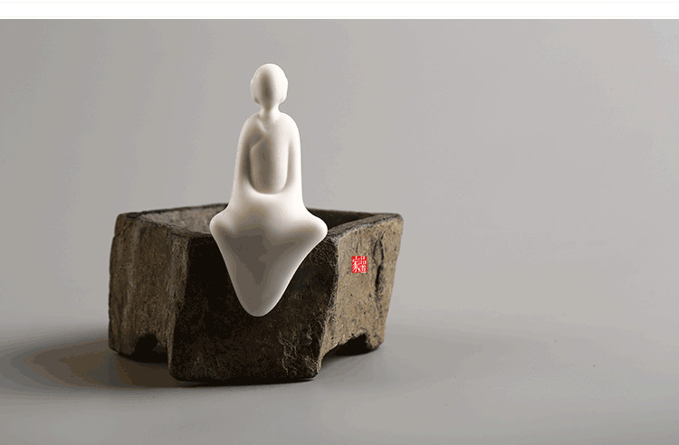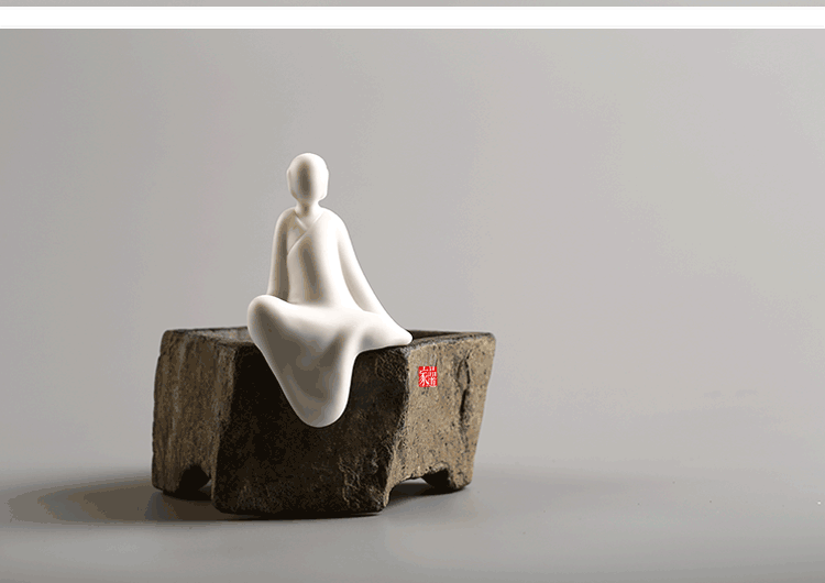 A款側坐品道家手工陶瓷茶玩白瓷無相小生 功夫茶具配件茶寵 茶臺創意擺件