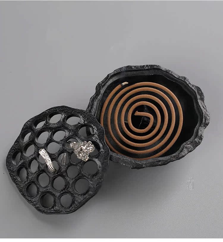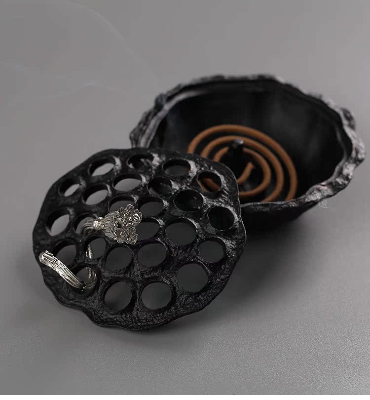 鑄鐵蓮蓬創意仿古香爐香插 鑄鐵蓮蓬盤香塔香爐 茶臺擺件熏香爐香座香托