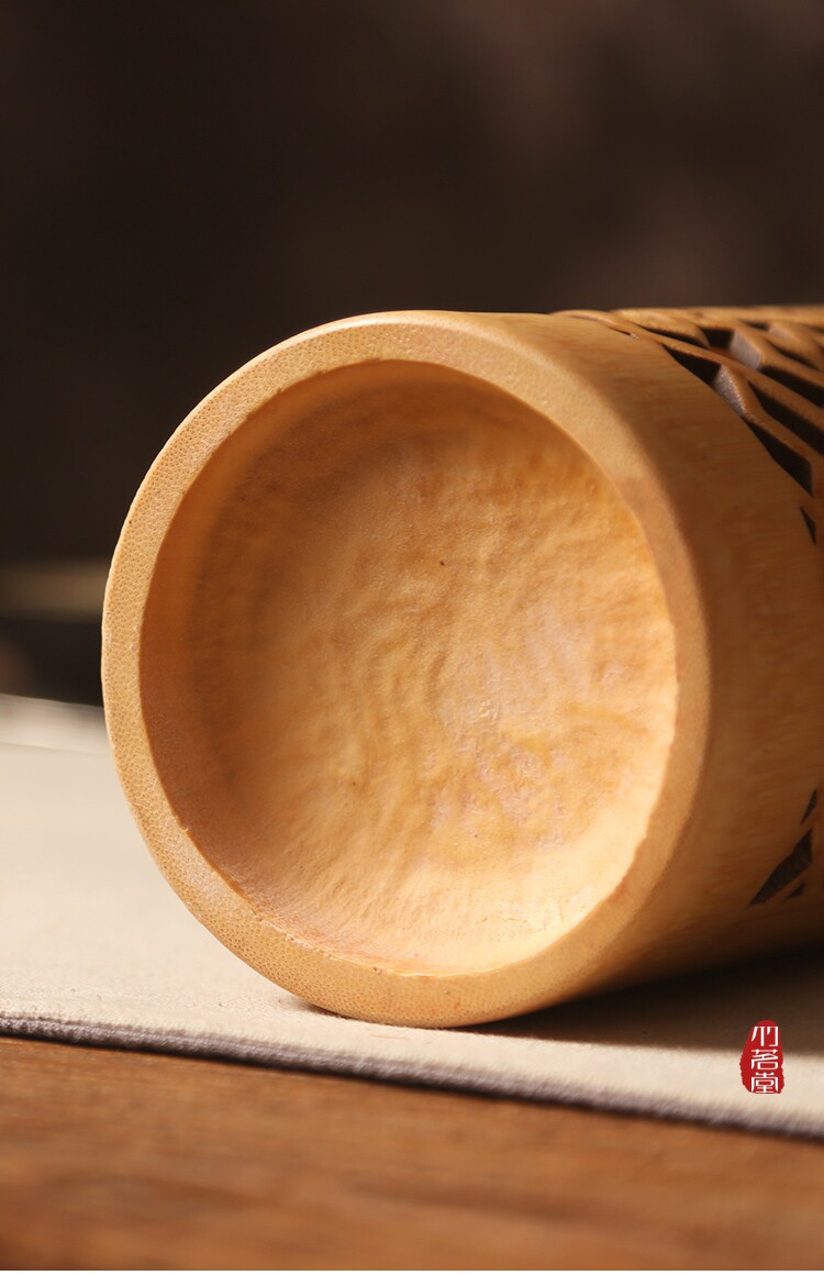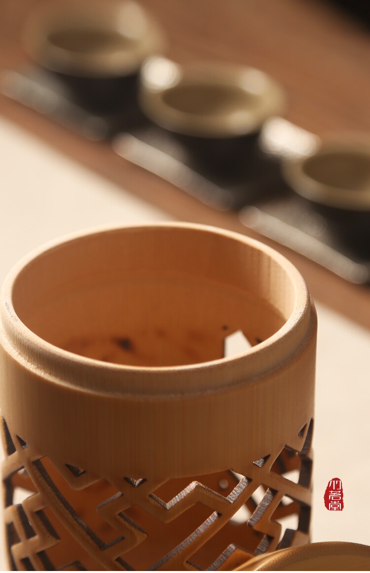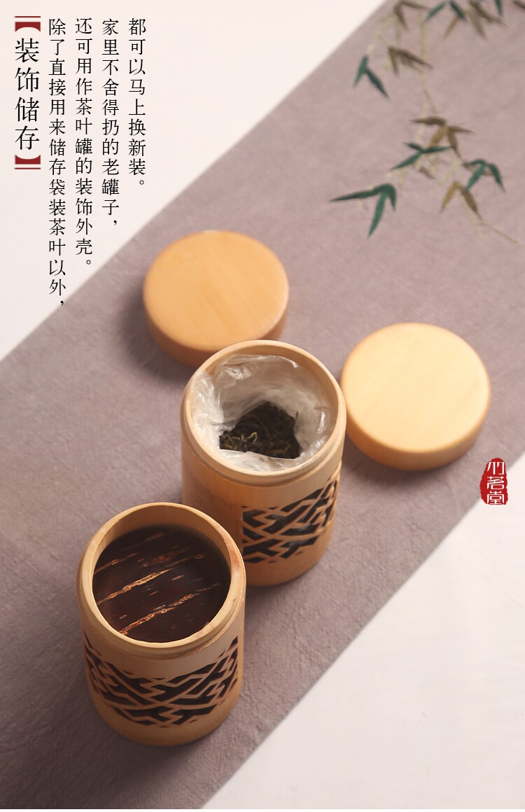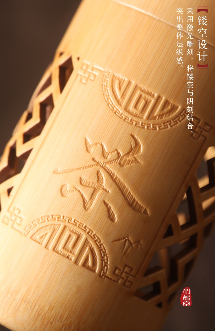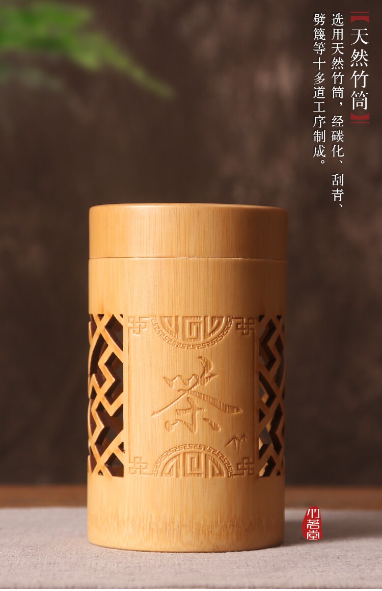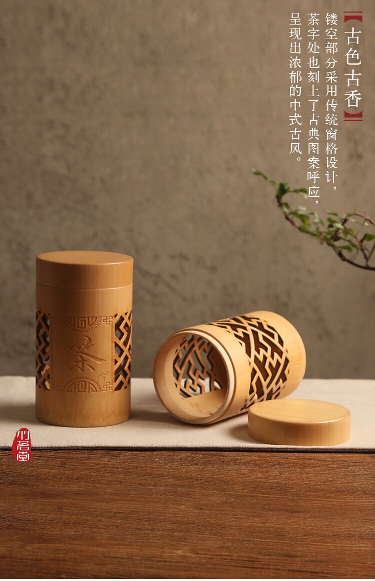 鏤空茶字茶葉罐復古雕刻竹茶葉罐子 手工竹筒儲茶葉盒 茶具醒茶葉桶木制大號包裝