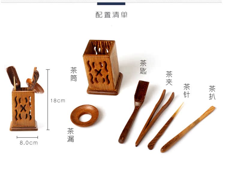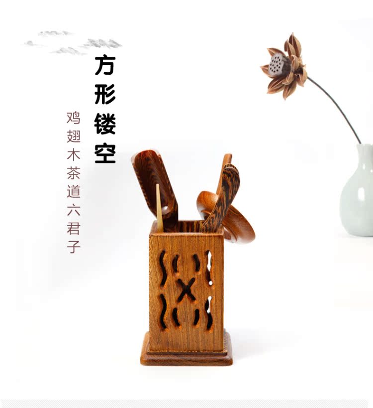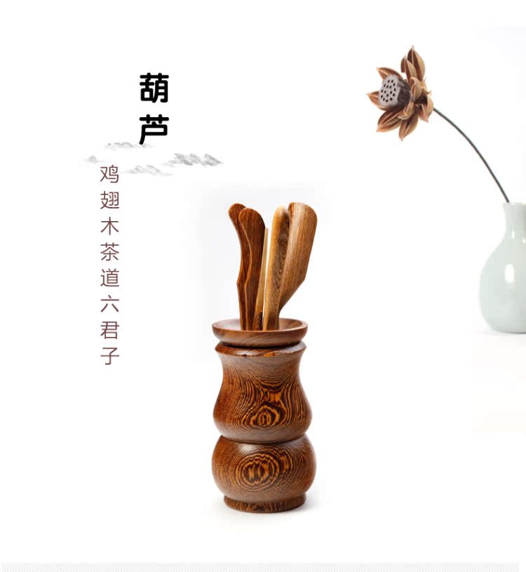 雞翅木茶道六君子-葫蘆雞翅木茶道六君子套裝泡茶工具組合功夫茶具配件實木茶藝零配擺件