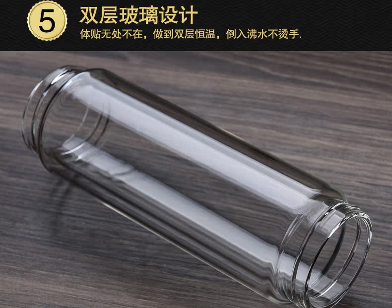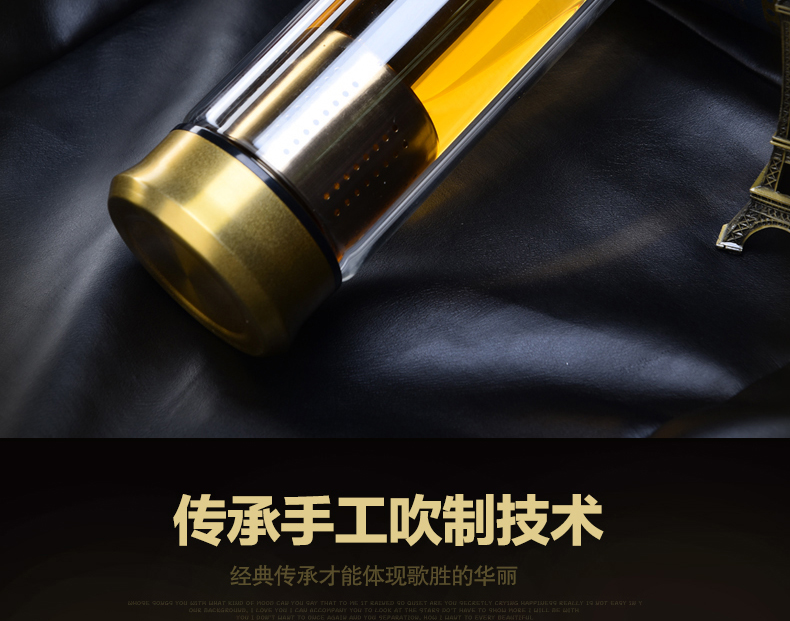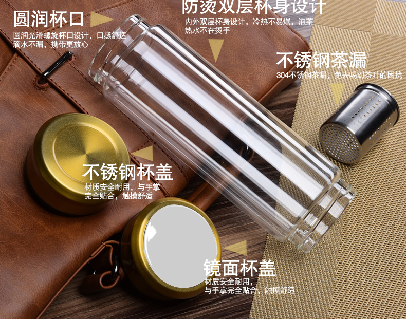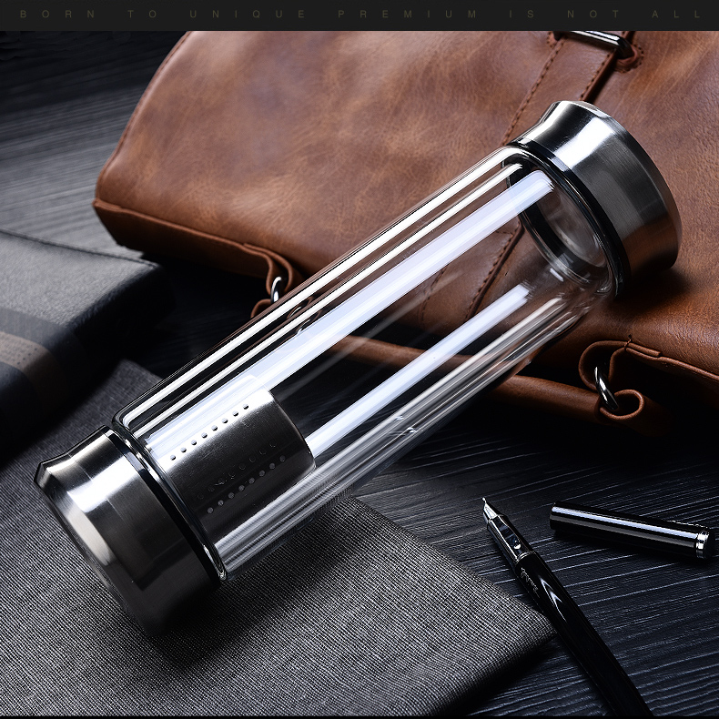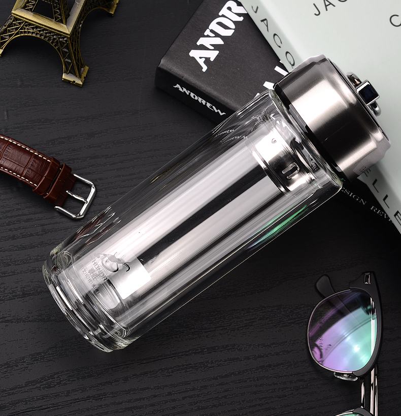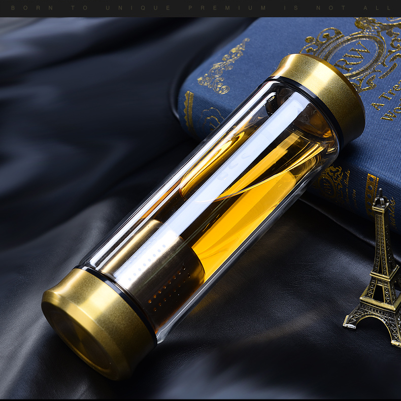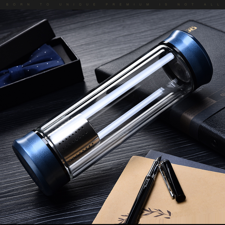 藍色420ml玻璃杯雙層便攜水杯男女商務辦公過濾茶杯水晶耐熱創意車載杯子
