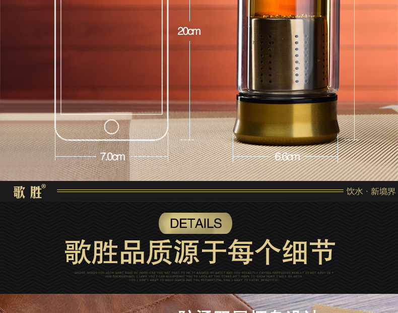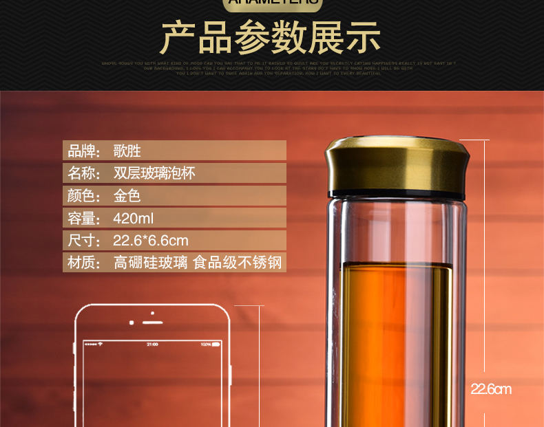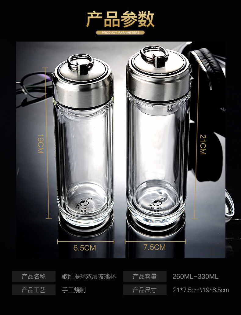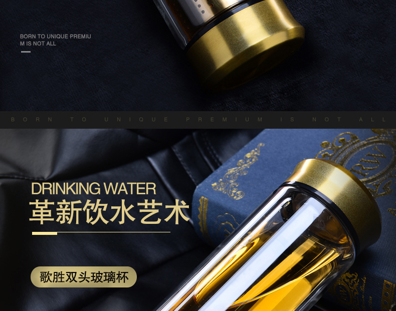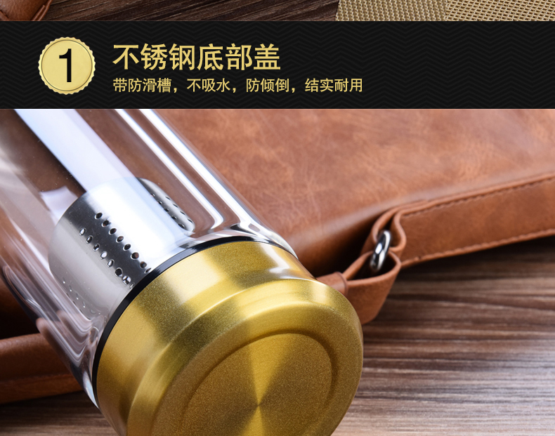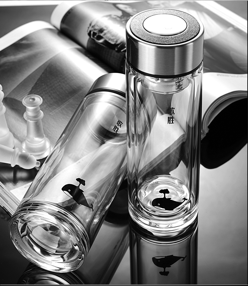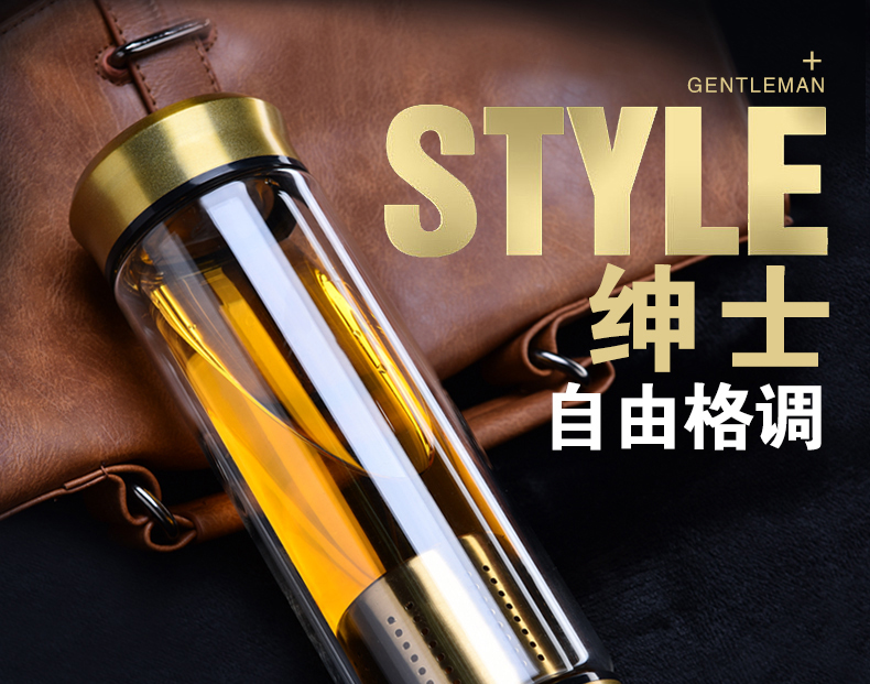 藍色420ml玻璃杯雙層便攜水杯男女商務辦公過濾茶杯水晶耐熱創意車載杯子