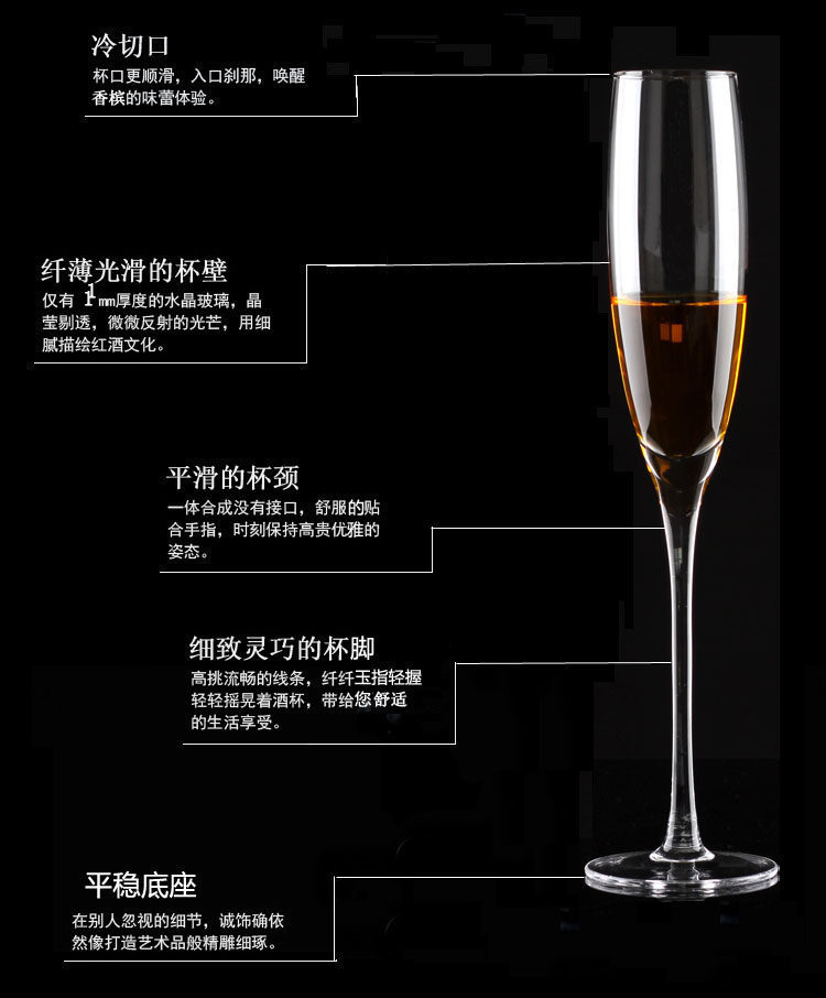經典款單支手工香檳杯套裝無鉛水晶玻璃高腳杯子氣泡酒杯甜酒杯家用