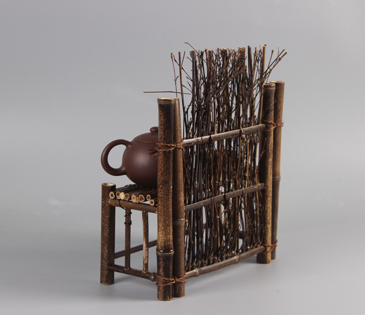 【產品工藝】工藝:麻繩穿梭于細密竹枝之間,并且有粗竹枝支撐作為主架,細竹枝通過麻繩穿插其中,重要部位用了銅線纏繞。精巧編織,并可折疊,很具有觀賞性。
