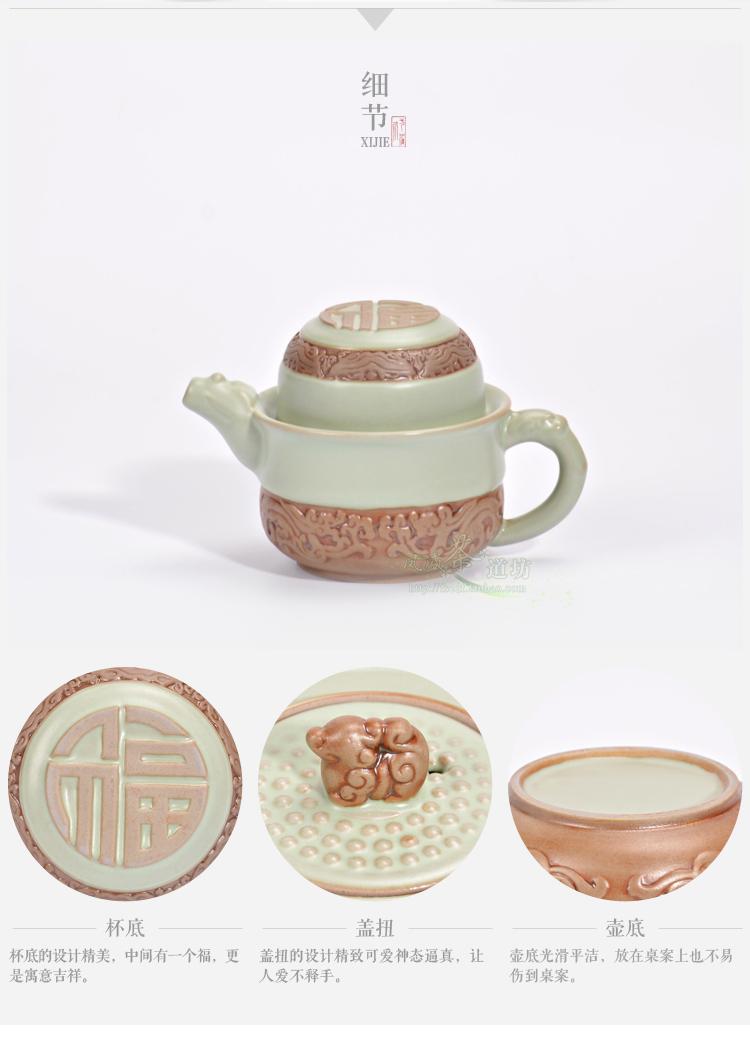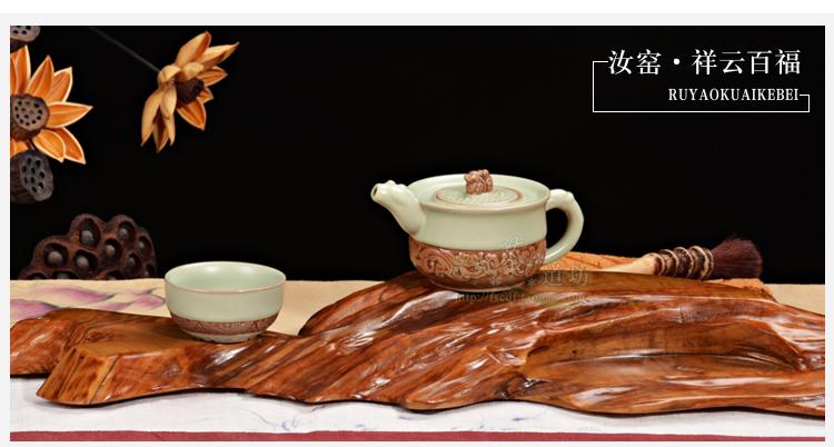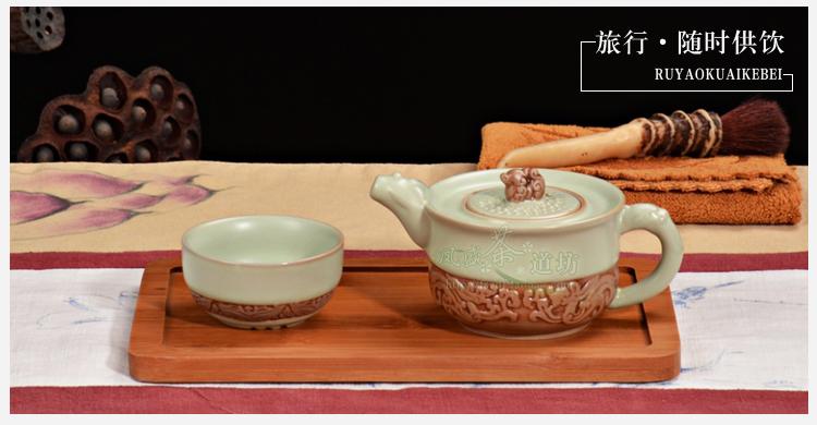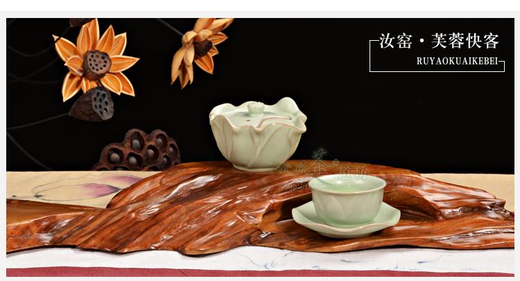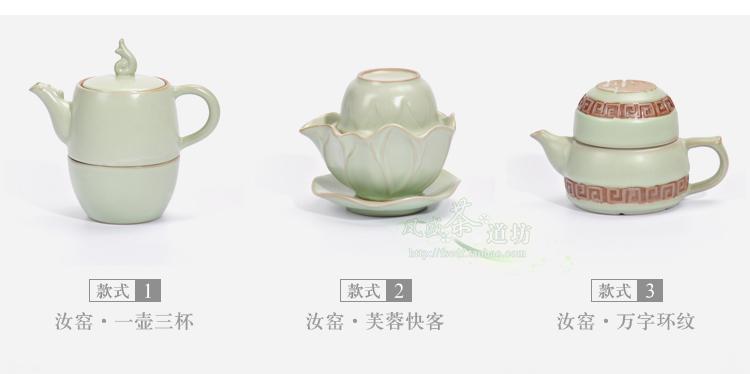款式二汝窯芙蓉快客陶瓷汝窯功夫茶具快客杯一人便攜旅行辦公車上一壺一茶杯開片