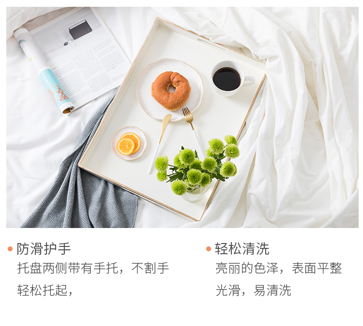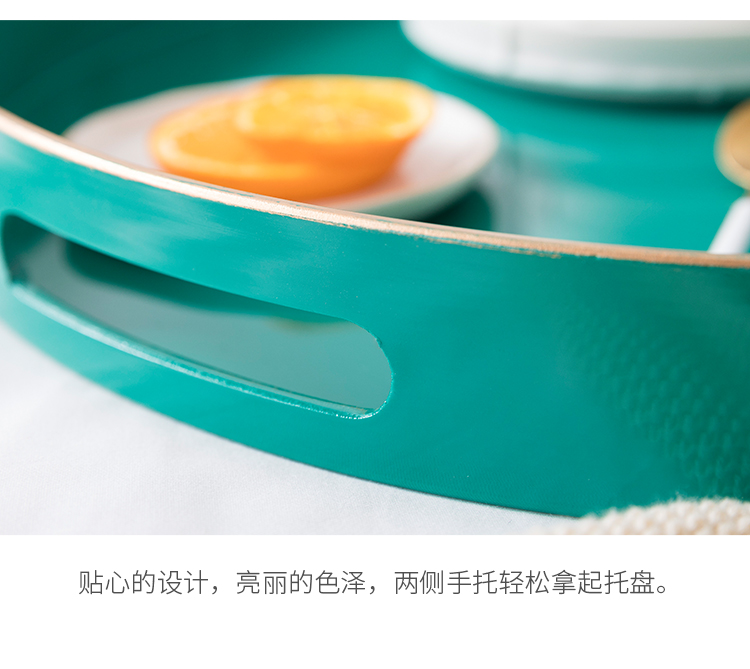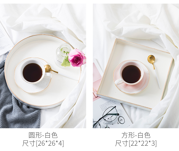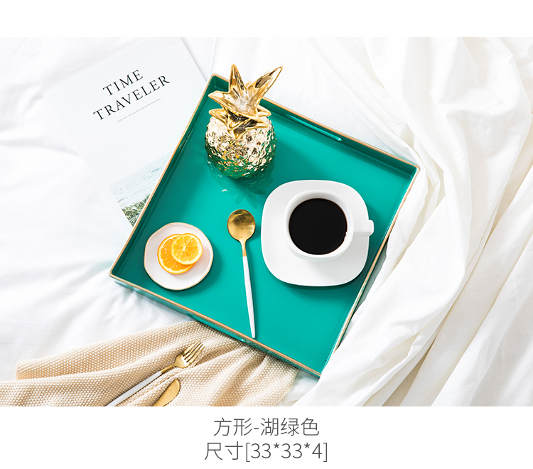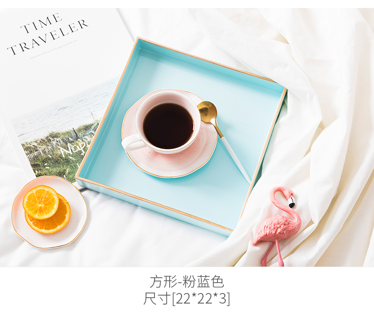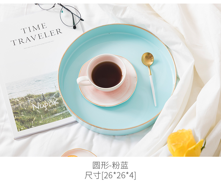 粉藍色方形ins風北歐裝飾塑料托盤擺件長方形圓形家用衛浴茶水杯子托盤