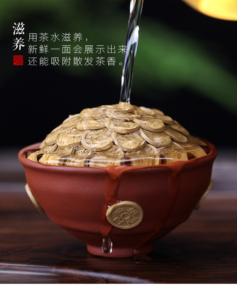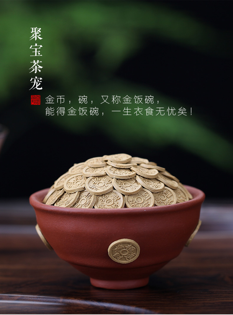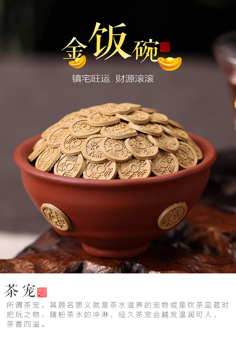 哥窯茶寵 宜興茶寵紫砂茶玩茶寵 茶具茶道配件手工擺件金飯碗