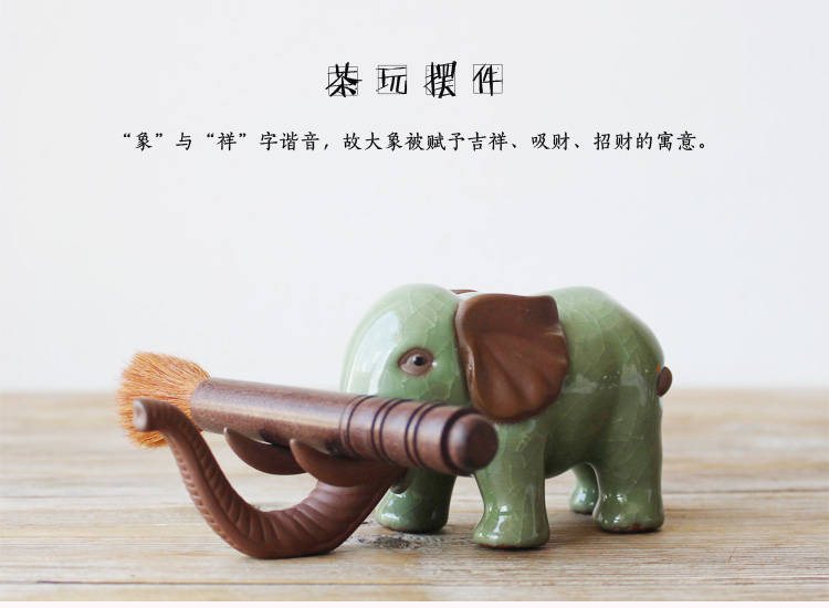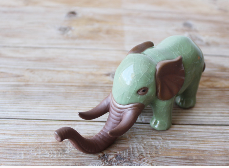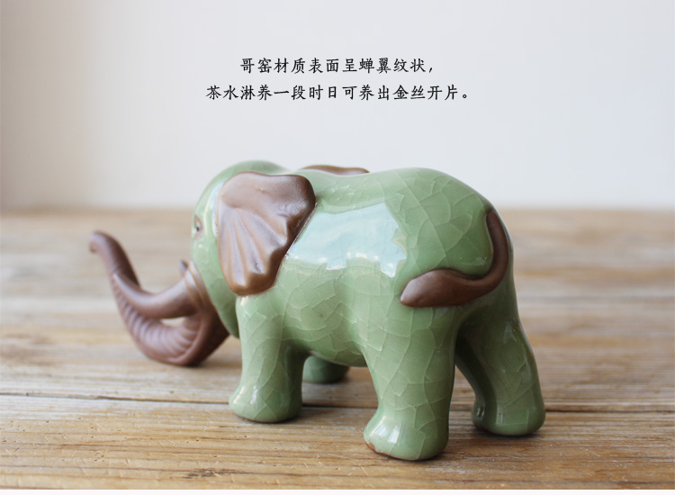 哥窯(大象)哥窯大象茶寵擺件精品 可養開片紫砂茶玩吉祥動物茶具招財擺件