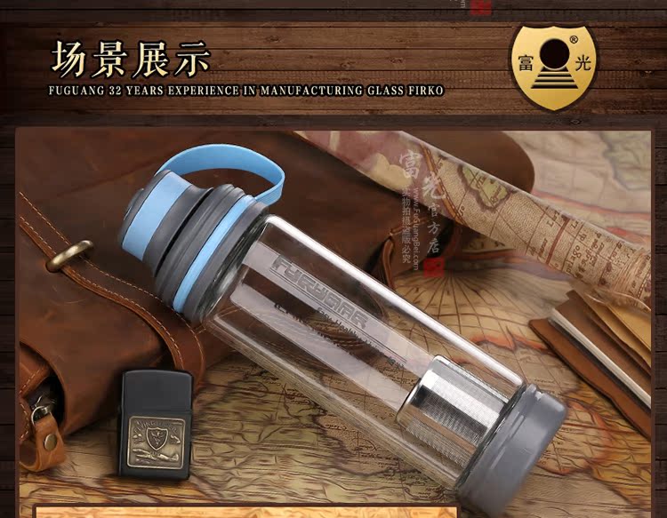 灰色600ML(杯套+杯刷+杯墊)富光玻璃杯便攜過濾泡茶杯 戶外運動旅行大容量男女士車載水杯子