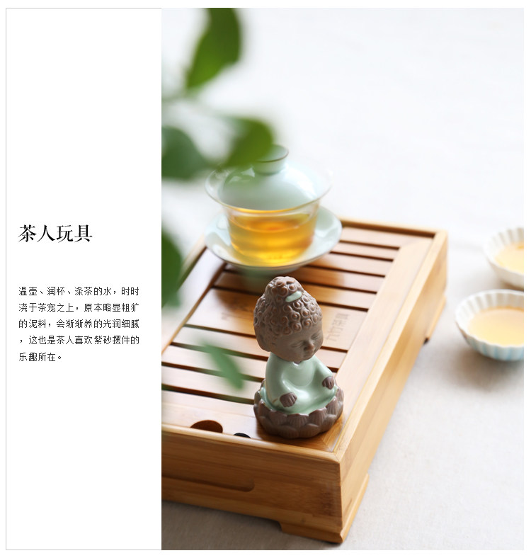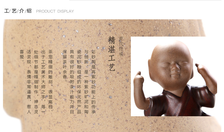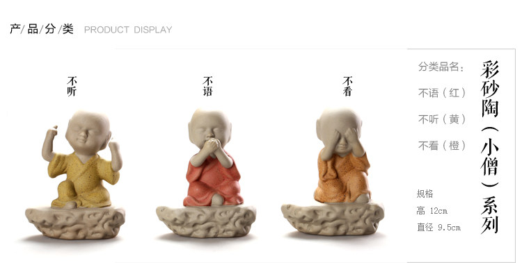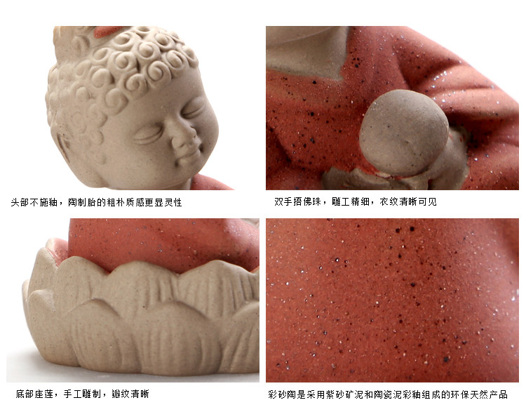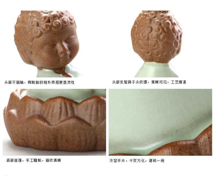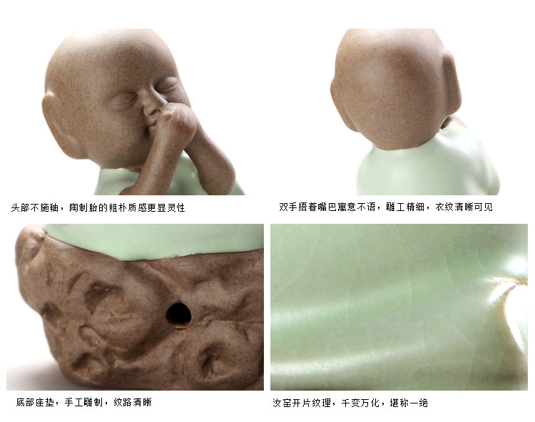 汝窯【抱珠】高檔茶寵擺件三不娃娃茶玩汝窯彩砂鐵銹小和尚精品茶具茶道零配件