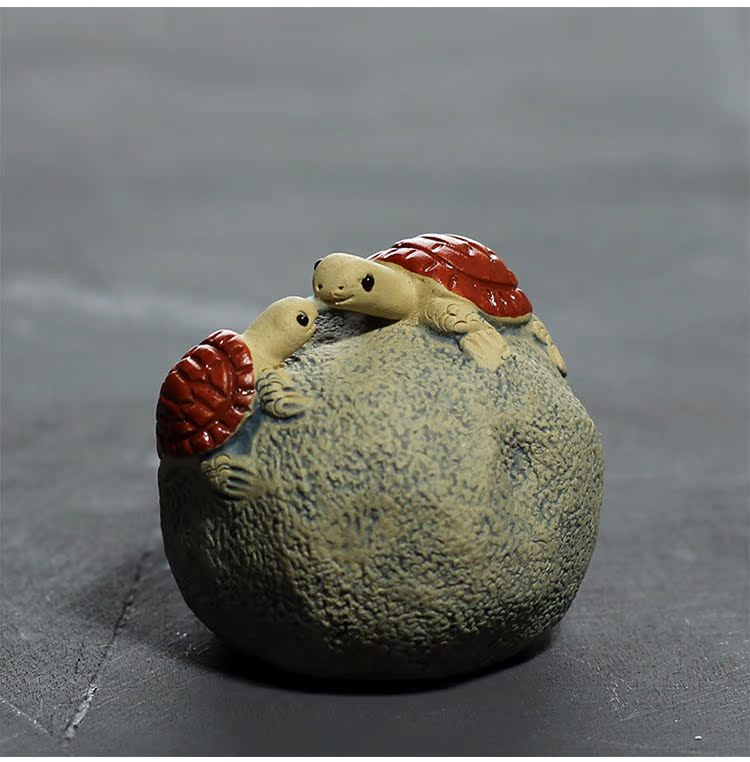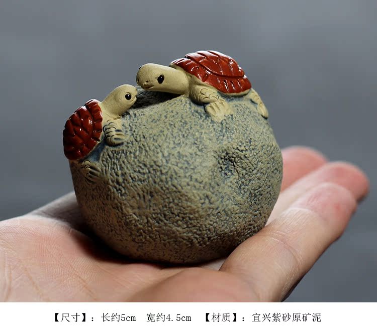 石頭龜茶寵如初 宜興紫砂茶寵石頭龜精品擺件創意茶玩茶寵擺件純手工茶配件
