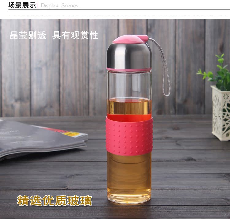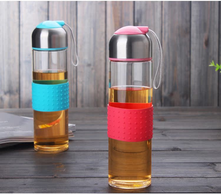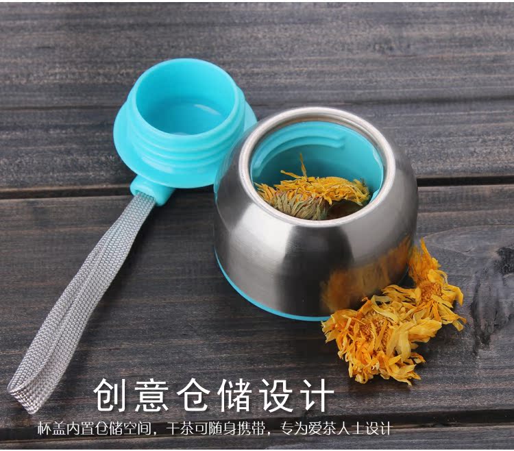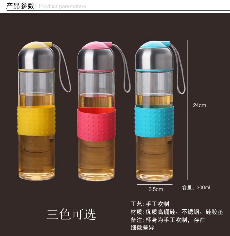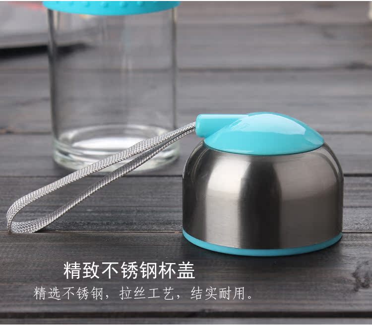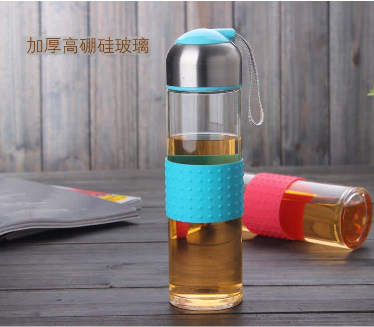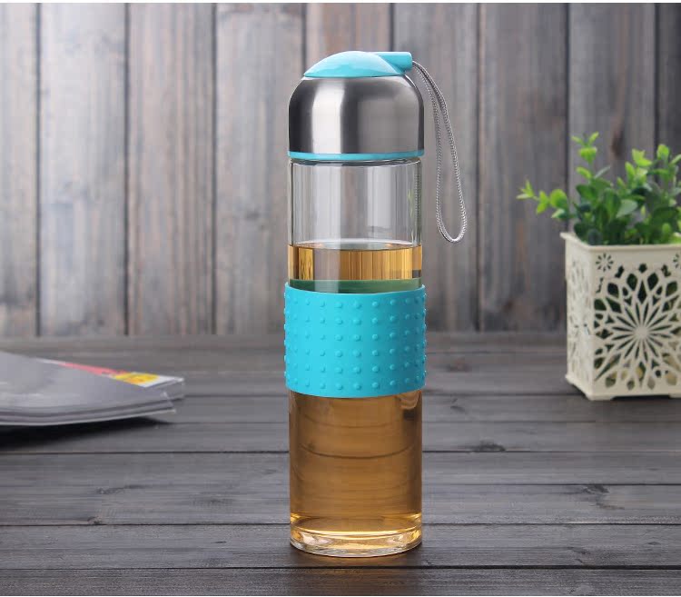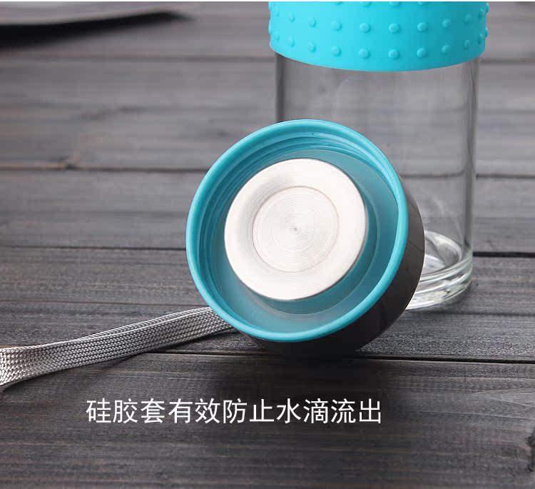 藍色耐高溫玻璃杯便攜水杯創意帶蓋過濾辦公杯子 男女耐熱車載茶杯