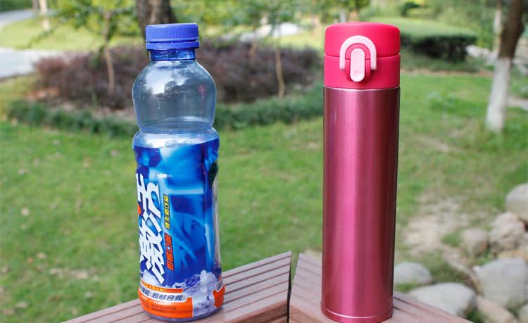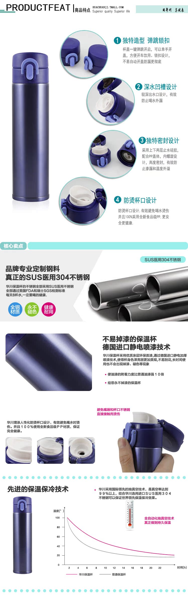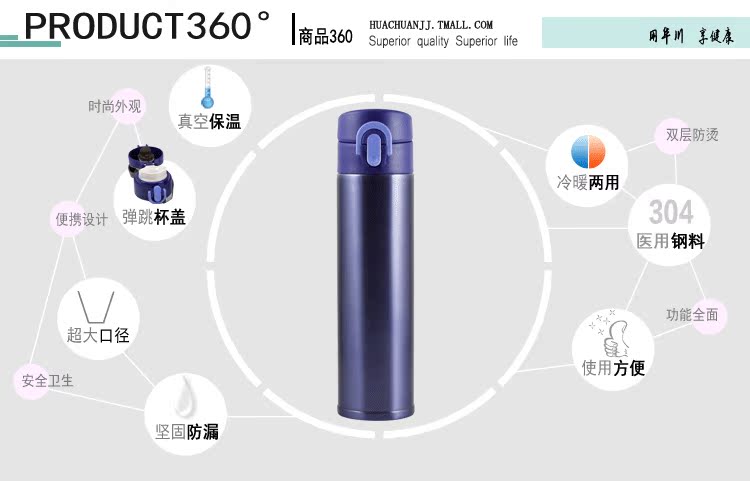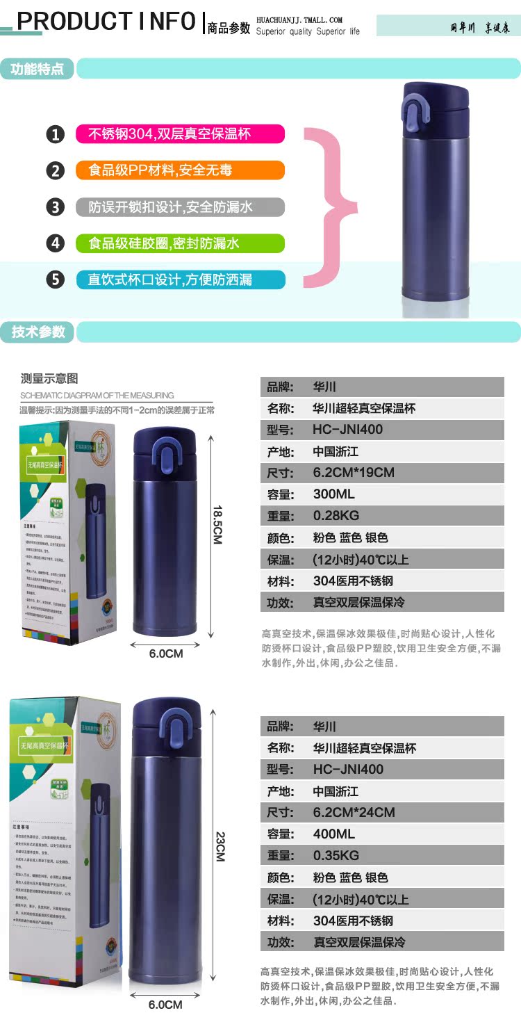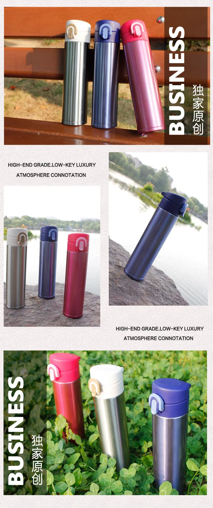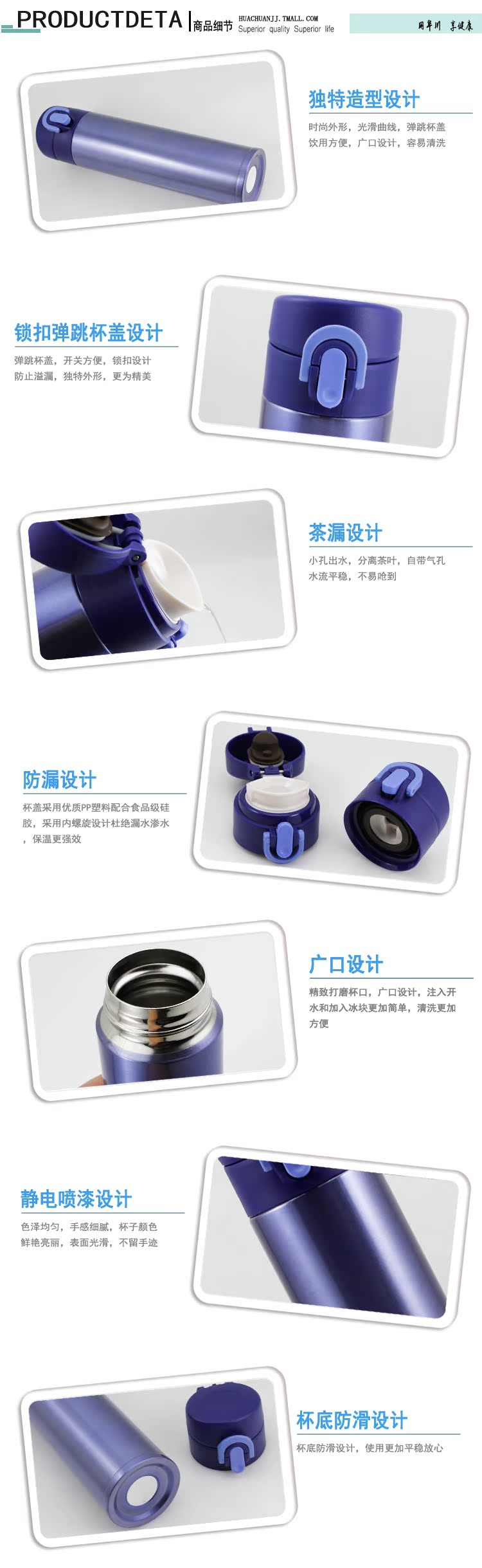 藍色300ml彈跳保溫杯男女學生情侶隨身車載水杯不銹鋼印字定制禮品杯子刻字