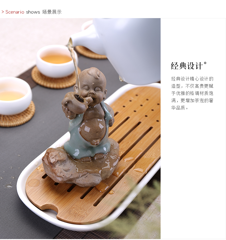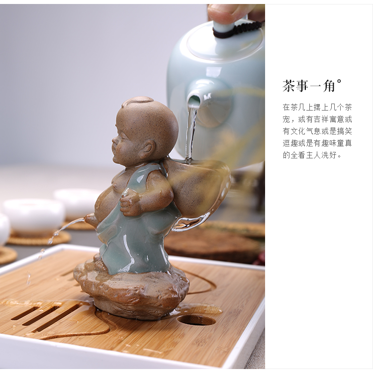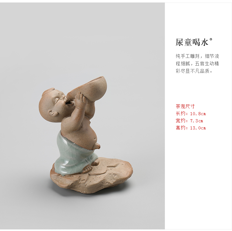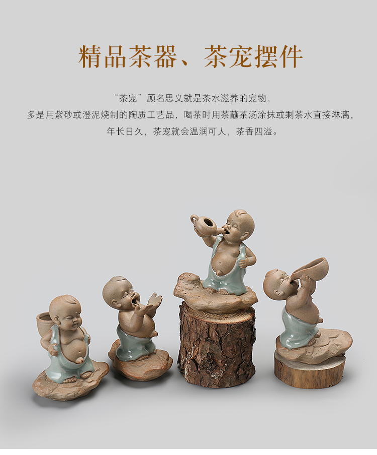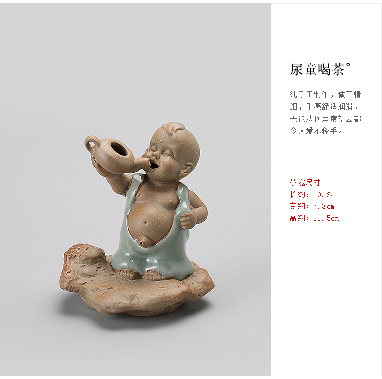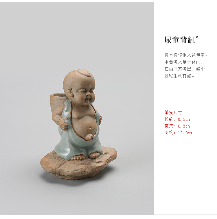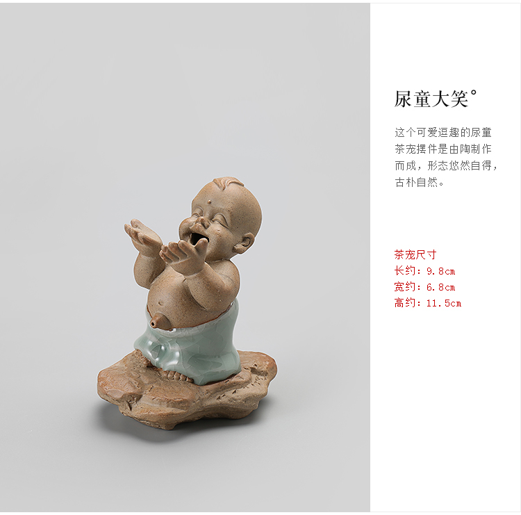 陶茶寵一套紫砂茶寵擺件創意茶藝茶具茶道茶盤茶玩撒尿娃娃童子噴水彩砂陶